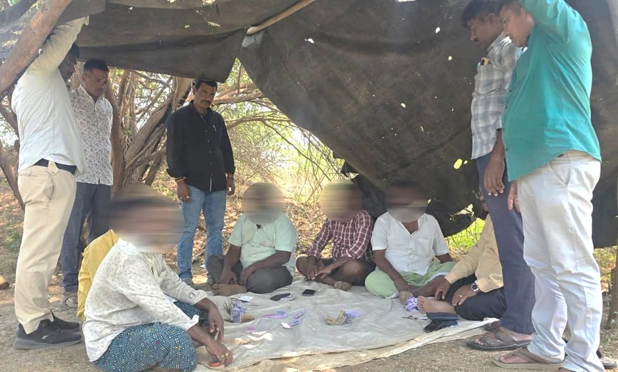 ప్రకాశం జిల్లా ఎస్పీ ఆదేశాల మేరకు, ప్రకాశం పోలీసులు గిద్దలూరు మండలం అక్కిరెడ్డిపల్లి గ్రామ శివారులో అక్రమంగా జూదం (పేకాట) నిర్వహిస్తున్నారన్న పక్కా సమాచారంతో పోలీసులు మెరుపు దాడి నిర్వహించారు. ఈ తనిఖీల్లో పేకాట ఆడుతున్న ఆరుగురు వ్యక్తులను పోలీసులు అదుపులోకి తీసుకున్నారు. వారి వద్ద నుండి రూ. 13,200/- నగదును మరియు జూదానికి సంబంధించిన సామాగ్రిని స్వాధీనం చేసుకున్నారు. అసాంఘిక కార్యకలాపాలకు పాల్పడే వారిపై కఠిన చర్యలు తీసుకుంటామని పోలీసులు హెచ్చరించారు.