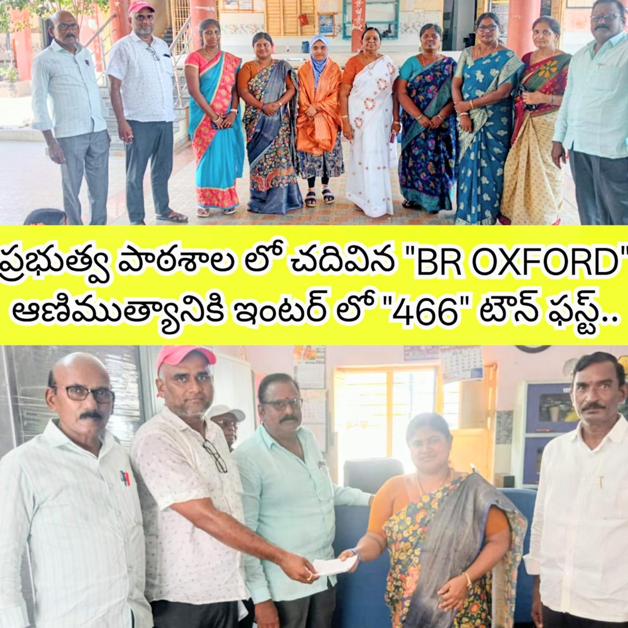 కందుకూరు పట్టణంలో చెందిన BR OXFORD IIT& MEDICAL ACADEMY కళాశాలలో ఇంటర్మీడియట్ మొదటి సంవత్సరం పూర్తి చేసిన షేక్ షాజియా 466/470 మార్కులతో టౌన్ ఫస్ట్ సాధించింది.అయితే షాజియా తండ్రి ఆజామ్ వలి కందుకూరు లో వృత్తి రీత్యా ఆటో నడుపుకుంటూ జీవనం సాగిస్తున్న ఓ మధ్య తరగతి కుటుంబానికి చెందిన వారు కాగా.. షాజియా పదవతరగతి కందుకూరు లోని (ZPHS GIRLS) బాలికల జిల్లా పరిషత్ ఉన్నత పాఠశాలలో చదవటం గర్వనీయం.ఈ సందర్భంగా ఆ విద్యార్థిని ని శుక్రవారం ప్రభుత్వ పాఠశాల సిబ్బంది మరియు BR OXFORD విద్యా సంస్థల యాజమాన్య సిబ్బంది కలిసి ఘనంగా సత్కరించారు. అనంతరం బిఆర్ ఆక్స్ఫర్డ్ యాజమాన్య సిబ్బంది ప్రభుత్వ పాఠశాల అభివృద్ధికి 10000/- ఆర్థిక సాయం అందించారు.ఈ సందర్భంగా షాజియా మాట్లాడుతూ..చిన్నప్పటి నుంచే తల్లి,దండ్రుల కష్టం చూస్తూ పెరిగానని,కస్టపడి చదివి తన తల్లి,తండ్రులకి, ఉపాధ్యాయులకు మంచి పేరు ప్రతిష్టలు తీసుకురావాలని పట్టుదలతో చదివి మంచి మార్కులు సాధించినట్లు పేర్కొంది.అలాగే తనకి ఇంటర్ లో మంచి మార్కులు రావడానికి కళాశాల ఉపాధ్యాయుల ప్రోత్సాహం, వారు ఇచ్చిన ప్రోద్బలం మరువలేనదని కొనియాడింది. భవిష్యత్తులో ఇంకా బాగా చదివి ఉన్నత స్థాయికి ఎదిగి తన తల్లి,దండ్రుల కలలను నిజం చేయాలని ఆశాభావం వ్యక్తం చేసింది.ఈ కార్యక్రమంలో ZPHS GIRLS ప్రధానోపాధ్యాయురాలు ద్వారకా రాణి, ఉపాధ్యాయులు-సుబ్బరత్నం, మురళీకృష్ణ, మహల్యారావు,రోజ్ లీల, గీత, పలువురు ఉపాధ్యాయ సిబ్బంది మరియు BR OXFORD విద్యాసంస్థల చైర్మన్ ఉన్నం భాస్కరరావు, కరస్పాండెంట్ బండి వెంకటేశ్వర్లు, డైరెక్టర్స్ జి.బాల భాస్కరరావు, బి.నరేంద్ర బాబు,ప్రిన్సిపాల్ అబ్బూరి వెంకటేశ్వర్లు,పలువురు ఉపాధ్యాయ సిబ్బంది పాల్గొని ఆ విద్యార్థిని ని అభినందించారు.