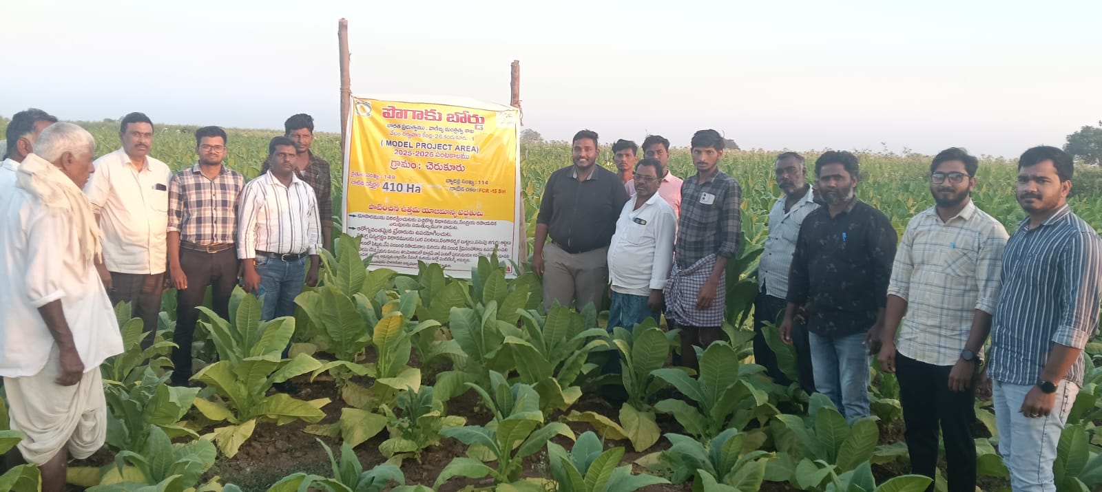 పొగాకు బోర్డు కందుకూరు -l వేలం కేంద్రం పరిధిలోని చెరుకూరు గ్రామంలో పొగాకు లో పాటించ వలసిన ఉత్తమ యాజమాన్య పద్ధతులు పై సమగ్ర సస్య రక్షణ, ఎరువులు యాజమాన్యం, ఆకు రెలుపు, క్యూరింగ్, గ్రేడింగ్ మరియు పొగాకులో అన్య పదార్థాల నిర్మూలన వంటి అంశాలపై రైతులకు , సిబ్బంది కి శిక్షణా కార్యక్రమం నిర్వహించడం జరిగింది. ఈ సందర్భంగా వేలం నిర్వహణ అధికారి వి.శివకుమార్ మాట్లాడుతూ అడుగు ఆకులు వొదిలేసి పక్వానికి వచ్చిన వాటిని మాత్రమే రెలచాలి అని అన్నారు. ఆకు అల్లిక సమయం లో టార్పాలిన్ పట్టాలు విడిగా వాడాలి అన్నారు. గ్రేడింగ్ సమయం లో బుట్టలను అందు బాటులో ఉంచుకొని అన్యపదర్దాలను అందులో వేయాలని చెప్పారు. బారన్ లో కురోమీటర్ వాడాలని దీనివలన అగ్ని ప్రమాదాలను నివారించ వచ్చని తెలిపారు ఇంకా బ్యారెన్ లో క్యురింగ్ సమయం లో తీసుకోవలసిన మెలుకువలు, జాగ్రత్తలు గురించి తెలియజేశారు. అనంతరం పొగాకు తోటలు పరిశీలించారు. ఈ కార్యక్రమం లో ఐటీసీ మేనేజర్ విజయ్ కుమార్ GPI మేనేజర్సుబ్బానాయుడు, పోలిశెట్టి కంపెనీ ప్రతినిధి శ్రీ శేఖర్ పొగాకు బోర్డు సిబ్బంది, మరియు రైతులు పాల్గొన్నారు..