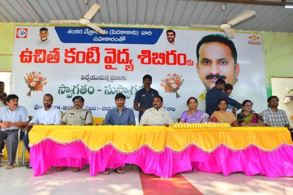కందుకూరులోని జిల్లా పరిషత్ బాలుర ఉన్నత పాఠశాలలో ఉచిత నేత్ర వైద్య శిబిరాన్ని ఆదివారం ఏర్పాటు చేశారు. పెదకాకాని శంకర నేత్రాలయ ఆధ్వర్యంలో వైద్యులు రోగులకు కంటి పరీక్షలు నిర్వహించి ఉచితంగా మందులు అందజేస్తున్నారు. కంటి ఆపరేషన్లు అవసరమైన వారికి పెదకాకాని తీసుకువెళ్లి ఆపరేషన్లు చేసే విధంగా ఏర్పాట్లు చేస్తున్నారు ఈ నేత్రవైద్య శిబిరానికి కందుకూరు నియోజవర్గంలోని అనేక గ్రామాల నుంచి వందల సంఖ్యలో ప్రజలు తరలివచ్చారు. అంతకుముందు సందీప్ పుట్టినరోజును పురస్కరించుకొని తెలుగుదేశం పార్టీ నాయకులు ఏర్పాటు చేసిన భారీ కేకును సందీప్ కట్ చేశారు. వివిధ వర్గాల ప్రజలు, నాయకులు, ప్రజలు సందీప్ కు పుట్టినరోజు శుభాకాంక్షలు తెలియజేశారు. అనంతరం ఇంటూరి నాగేశ్వరరావు రిబ్బన్ కట్ చేసి నేత్ర వైద్య శిబిరాన్ని ప్రారంభించారు.