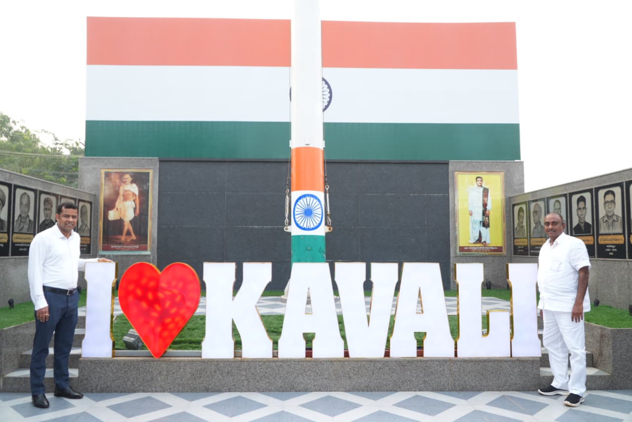 నెల్లూరు జిల్లా కావలి పట్టణంలోని ‘ఐ లవ్ కావలి’ ఐకాన్ సెంటర్ను శుక్రవారం జిల్లా కలెక్టర్ హిమాన్షు శుక్లా, కావలి ఎమ్మెల్యే కావ్య కృష్ణారెడ్డి తో కలిసి సందర్శించారు.కావలి పట్టణం నడిబొడ్డున ఆకర్షణీయంగా ఏర్పాటు చేసిన సెల్ఫీ సెంటర్ను పరిశీలించారు.గ్యాలరీలో ఏర్పాటు చేసిన దేశభక్తి నాయకుల చిత్రపటాలు, కావలి మాజీ ఎమ్మెల్యేల ఫోటో గ్యాలరీ, అలాగే 100 అడుగుల జాతీయ జెండాను వీక్షించారు. ఐకాన్ సెంటర్ ప్రత్యేకతలను, ఆకర్షణీయంగా రూపొందించిన డిజైన్ను ఎమ్మెల్యే గారిని అడిగి తెలుసుకున్నారు..ఈ సందర్భంగా ఎమ్మెల్యే కావ్య కృష్ణారెడ్డి, జిల్లా కలెక్టర్ హిమాన్షు శుక్లాతో కలిసి సెల్ఫీ దిగారు. “కావలి ప్రజల హృదయంలో అందంగా, దేశభక్తి భావాలకు నాంది పలికే విధంగా ఈ ఐకాన్ సెంటర్ ఏర్పాటు చేయడం నిజంగా అద్భుతం” అని కావలి ప్రజలకు గర్వకారణంగా నిలుస్తున్న ఈ ఐకాన్ సెంటర్ ఉందని జిల్లా కలెక్టర్ ఎమ్మెల్యే కావ్య కృష్ణారెడ్డి అభినందించారు.