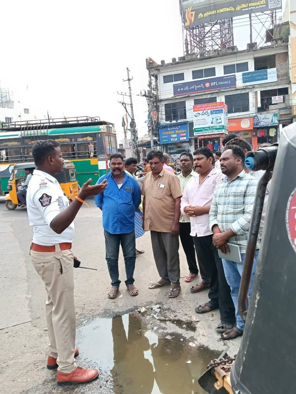 ప్రకాశం జిల్లా పోలీసులు ట్రాఫిక్ పోలీస్ స్టేషన్కు చెందిన ఆర్ఎస్ఐ శివప్రసాద్ పర్యవేక్షణలో ఒంగోలు అద్దంకి బస్టాండ్ పరిసరాల్లో ప్రత్యేక తనిఖీలు నిర్వహించారు. ఈ సందర్భంగా రోడ్డుపై అనధికారికంగా నిలబడి ట్రాఫిక్కు అంతరాయం కలిగించిన ఆటో డ్రైవర్లపై జరిమానాలు విధించారు.తరువాత ఆటో డ్రైవర్లకు కౌన్సెలింగ్ నిర్వహించి, ప్రజలకు ఎలాంటి అసౌకర్యం కలిగించకుండా ట్రాఫిక్ నియమాలను కచ్చితంగా పాటించాలని సూచనలు ఇచ్చారు. నియమిత పార్కింగ్ ప్రదేశాల్లోనే వాహనాలు నిలిపివేయాలని స్పష్టమైన ఆదేశాలు అందజేశారు.ప్రజా రవాణా సాఫీగా సాగేందుకు, ట్రాఫిక్ ఇబ్బందులను తగ్గించేందుకు ప్రతి ఒక్కరూ ట్రాఫిక్ నియమాలను పాటించాలని ప్రకాశం జిల్లా పోలీసులు విజ్ఞప్తి చేస్తున్నారు.