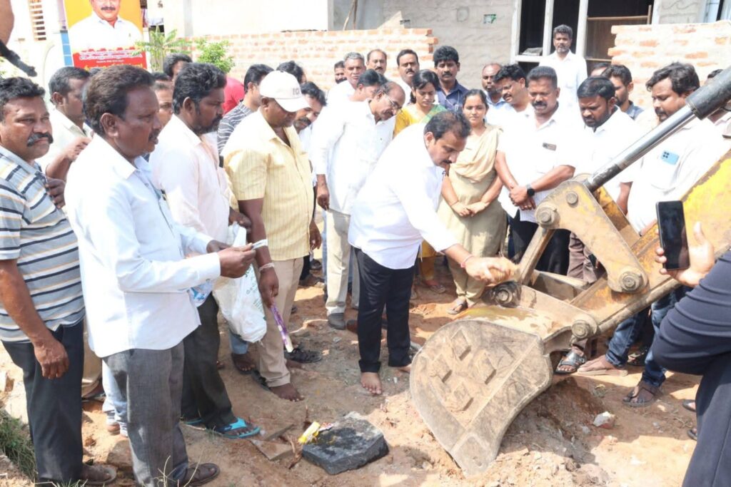 కందుకూరు పట్టణంలోని 9వ వార్డు ప్రకాశం కాలనీ మరియు రెవెన్యూ కాలనీల్లో సీసీ రోడ్ల నిర్మాణానికి ఎమ్మెల్యే ఇంటూరి నాగేశ్వరావు గారు బుధవారం శంకుస్థాపన చేశారు. 22.5 లక్షల రూపాయల SC సబ్ ప్లాన్ నిధులతో 3 రోడ్లు నిర్మించనున్నారు. తమకు రోడ్డు కష్టాలు తీరబోతున్నాయని కాలనీవాసులు హర్షం వ్యక్తం చేస్తూ… వారంతా ఎమ్మెల్యేకు కృతజ్ఞతలు తెలిపారు. పట్టణ చరిత్రలో ఎప్పుడూ లేనివిధంగా, ఈ 20 నెలల కాలంలో మున్సిపాలిటీ పరిధిలో కోట్లాది రూపాయలతో సిసి రోడ్లు, డ్రైనేజీ కాలువలు నిర్మించామని ఎమ్మెల్యే నాగేశ్వరరావు చెప్పారు. ప్రజలకు సౌకర్యంగా ఉండేలా సరికొత్త హంగులతో డివైడర్, సెంట్రల్ లైటింగ్ అందుబాటులోకి తీసుకొచ్చామన్నారు. ఎమ్మెల్యే మాట్లాడుతూ…. గత ఏడాది ముఖ్యమంత్రి చంద్రబాబు కందుకూరు వచ్చినప్పుడు… పట్టణ అభివృద్ధికి 50 కోట్లు మంజూరు చేస్తానని ప్రకటించడం, ఇచ్చిన హామీని నిలబెట్టుకుంటూ డబ్బులు విడుదల చేస్తుండడంతో అభివృద్ధి వేగవంతంగా జరుగుతుందన్నారు. సిసి రోడ్ల నిర్మాణం క్వాలిటీగా చేపట్టి, త్వరగా ప్రజలకు అందుబాటులోకి తీసుకురావాలని అధికారులకు ఎమ్మెల్యే సూచించారు. ఈ కార్యక్రమంలో మున్సిపల్ కమిషనర్ అనూష, పట్టణ టిడిపి అధ్యక్షుడు దామా మల్లేశ్వరరావు, రాష్ట్ర విశ్వబ్రాహ్మణ కార్పొరేషన్ డైరెక్టర్ చిలకపాటి మధు, పట్టణప్రధాన కార్యదర్శి షేక్ సలాం, స్థానిక నాయకులు వంకాయలపాటి రాజేంద్రప్రసాద్, వార్డు అధ్యక్షులు పర్సు నాగేశ్వరరావు, ప్రధాన కార్యదర్శి చదలవాడ ఇమ్మానియేలు, మున్సిపల్ మాజీ వైస్ చైర్మన్ ఉప్పుటూరి శ్రీను, రాష్ట్ర ముస్లిం మైనార్టీ సెల్ అధికార ప్రతినిధి షేక్ రఫీ, నెల్లూరు పార్లమెంట్ కార్యనిర్వాహక కార్యదర్శి షేక్ రూబీ, అధికార ప్రతినిధి చదలవాడ కొండయ్య, నియోజకవర్గ అధ్యక్షుడు అల్లం వెంకటేశ్వర్లు, నియోజకవర్గ ఐటీడీపీ అధ్యక్షుడు షేక్ మున్నా, వడ్డెళ్ళ రవిచంద్ర, రాష్ట్ర వాణిజ్య విభాగం కార్యనిర్వాహక కార్యదర్శి కూనం నరేంద్ర, పట్టణ తెలుగు యువత అధ్యక్షుడు సవిడిబోయిన కృష్ణ, మాజీ కౌన్సిలర్ కొచ్చర్ల శ్రీను, చుండూరి శ్రీను, జియావుద్దీన్, కోట కిషోర్, మురారిశెట్టి సుధీర్, రాయపాటి శ్రీను, అన్ని వార్డుల అధ్యక్షులు పాల్గొన్నారు.