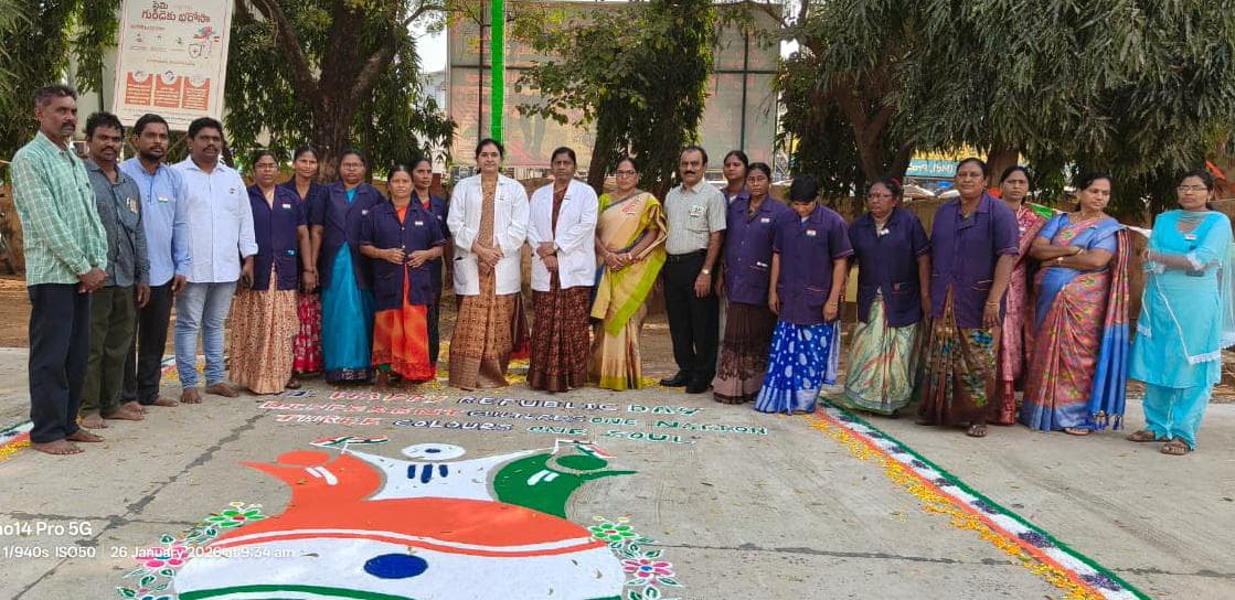 కందుకూరు ఏరియా వైద్యశాలలో 77వ గణతంత్ర దినోత్సవ వేడుకలు శుక్రవారం ఘనంగా నిర్వహించారు. ఈ సందర్భంగా ఆసుపత్రి ప్రాంగణంలో మెడికల్ సూపర్డెంట్ డాక్టర్ ఇంద్రాణి జాతీయ జెండానుఆవిష్కరించారు . అనంతరం జాతీయ గీతం ఆలపించి, స్వాతంత్ర్య సమరయోధులకు ఘన నివాళులు అర్పించారు.ఈ కార్యక్రమాన్ని ఉద్దేశించి డాక్టర్ ఇంద్రాణి ప్రసంగిస్తూ, భారత రాజ్యాంగం దేశానికి అందించిన ప్రజాస్వామ్య విలువలు, సమానత్వం, సౌభ్రాతృత్వం గురించి వివరించారు. దేశ అభివృద్ధిలో ప్రతి పౌరుడి పాత్ర కీలకమని, ముఖ్యంగా వైద్య రంగంలో పనిచేస్తున్న వారు సేవా భావంతో, మానవతా దృక్పథంతో ప్రజలకు నాణ్యమైన వైద్య సేవలు అందించాల్సిన బాధ్యత మన అందరి మీద ఉందని ఆమె తెలిపారు.ప్రభుత్వ ఆసుపత్రులు పేదలు, మధ్యతరగతి ప్రజలకు ప్రధాన ఆరోగ్య కేంద్రాలుగా నిలుస్తున్నాయని పేర్కొంటూ, రోగుల పట్ల సానుభూతితో వ్యవహరించడం, అత్యవసర పరిస్థితుల్లో సమయపాలన పాటించడం అత్యంత అవసరమని సూచించారు. ప్రజల ఆరోగ్య పరిరక్షణే ప్రధాన లక్ష్యంగా వైద్యులు, నర్సులు, పారామెడికల్ సిబ్బంది సమన్వయంతో పనిచేయాలని పిలుపునిచ్చారు.