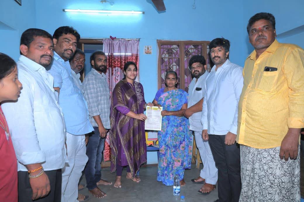 దొనకొండ మండలం, ఆరవల్లిపాడు గ్రామానికి చెందిన టిడిపి కార్యకర్త రామడుగు గురుబ్రహ్మచారి గారు రోడ్డు ప్రమాదంలో మృతి చెందడం తీవ్ర విషాదకరం. ఈ నేపథ్యంలో, దర్శి టిడిపి ఇంచార్జ్ డా. గొట్టిపాటి లక్ష్మీ టిడిపి యువ నాయకులు డా. కడియాల లలిత్ సాగర్ గురుబ్రహ్మచారి గారి నివాసానికి వెళ్లి, ఆయన భార్య శ్రీమతి రామడుగు పుల్లమ్మ గారిని పరామర్శించారు.ఈ సందర్భంగా, టిడిపి కేంద్ర కార్యాలయం ద్వారా మంజూరు చేయబడిన ₹5 లక్షల ప్రమాద భీమా చెక్కును ఆమెకు అందజేశారు. ఈ కష్ట సమయంలో పార్టీ పూర్తిగా అండగా ఉంటుందని, ధైర్యంగా ఉండాలని భరోసా ఇచ్చారు.ఈ కార్యక్రమంలో దర్శి ఏఎంసీ చైర్మన్ దారం నాగవేణి – సుబ్బారావు , దొనకొండ మండల మాజీ టిడిపి అధ్యక్షులు నాగులపాటి శివకోటేశ్వర రావు, గ్రామ నాయకులు మరియు ఇతర కార్యకర్తలు పాల్గొన్నారు.తమ కుటుంబానికి అండగా నిలిచిన డా. గొట్టిపాటి లక్ష్మీ కి గురుబ్రహ్మచారి కుటుంబ సభ్యులు కృతజ్ఞతలు తెలిపారు.