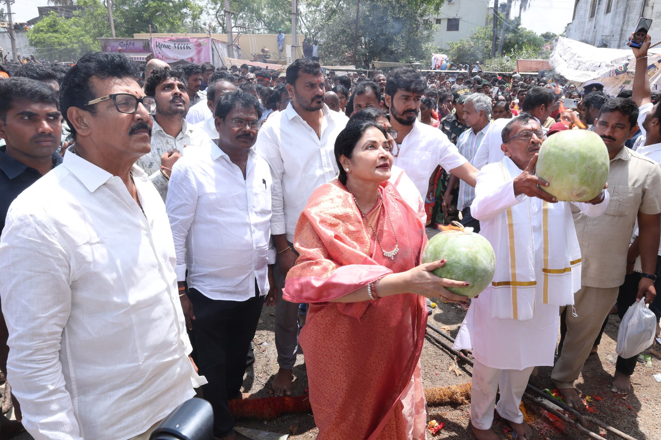నెల్లూరు జిల్లా బుచ్చిరెడ్డిపాలెంలో శ్రీ కోదండ రామస్వామి వారి శ్రీరామనవమి వేడుకల్లో భాగంగా స్వామివారి రథోత్సవం అత్యంత భక్తి శ్రద్ధలతో ఘనంగా జరిగింది. ఈ పవిత్ర వేడుకలో కోవూరు ఎమ్మెల్యే శ్రీమతి వేమిరెడ్డి ప్రశాంతమ్మ గారు పాల్గొని స్వామివారికి ప్రత్యేక పూజలు నిర్వహించారు. జై శ్రీరామ్ నామ స్మరణతో ఆలయ ప్రాంగణం మారుమ్రోగింది. ఈ సందర్భంగా ఎమ్మెల్యే ప్రశాంతమ్మ మాట్లాడుతూ, శ్రీ కోదండ రామస్వామి వారి ఆశీస్సులతో కోవూరు ప్రజలందరికీ ఆయురారోగ్యాలు, సుఖశాంతులు కలగాలని ఆకాంక్షించారు. భక్తులతో కలిసి రథాన్ని లాగుతూ ఆధ్యాత్మిక ఉత్సాహాన్ని పంచుకున్నారు. రథోత్సవం సందర్భంగా పెద్ద ఎత్తున భక్తులు పాల్గొని స్వామివారికి దర్శనం చేసుకున్నారు. ఈ కార్యక్రమం గ్రామ ప్రజల ఐక్యతకు, ఆధ్యాత్మిక చైతన్యానికి ప్రతీకగా నిలిచిందని ఆమె తెలిపారు. ఈ వేడుకలో స్థానిక ప్రజాప్రతినిధులు, అధికారులు, గ్రామ పెద్దలు మరియు భక్తులు భారీ సంఖ్యలో పాల్గొన్నారు.