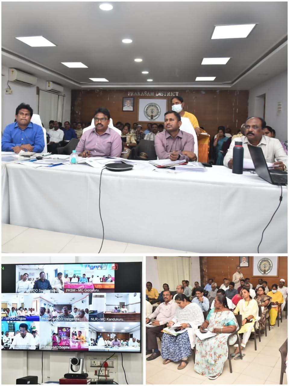 ప్రకాశం జిల్లా కలెక్టర్ పి. రాజాబాబు జాయింట్ కలెక్టర్ ఆర్. గోపాలకృష్ణ తో కలిసి మండల స్థాయి అధికారులతో మంగళవారం రోజు న సమగ్ర వీడియో కాన్ఫరెన్స్ ని నిర్వహించారు. ఈ సందర్భంగా కలెక్టర్ మాట్లాడుతూ, అభివృద్ధి పనుల పర్యవేక్షణలో ఎంపీడీవోలే తనకు “కళ్ళు, చెవులుగా” ఉండాలని, అధికారులు వారంలో కనీసం మూడు రోజులు క్షేత్రస్థాయిలో పర్యటించాలని స్పష్టం చేశారు. ముఖ్యంగా ఉగాది నాటికి గృహ నిర్మాణ లక్ష్యాలను పూర్తి చేయాలని మరియు వచ్చే వేసవిలో తాగునీటి సమస్య తలెత్తకుండా ముందస్తు చర్యలు చేపట్టాలని ఆదేశించారు.విద్య మరియు సామాజిక అభివృద్ధిపై ప్రత్యేక దృష్టి సారించిన కలెక్టర్ , ‘వన్ ఆఫీసర్ – వన్ ఇన్స్టిట్యూట్’ కార్యక్రమంలో అధికారులు చురుగ్గా పాల్గొనాలని పిలుపునిచ్చారు. అంతర్జాతీయ మహిళా దినోత్సవం నాటికి బాలికల హాస్టళ్లలో వసతుల కల్పన పూర్తి చేయాలని, ఎం.ఎస్.ఎం.ఈ (MSME) పార్కుల కోసం స్థలాలను త్వరగా గుర్తించాలని అధికారులను ఆదేశించారు. ‘మీకోసం’ వేదిక ద్వారా వచ్చే అర్జీలను నాణ్యతతో పరిష్కరించి, ప్రజల సంతృప్తిని పెంపొందించడమే లక్ష్యంగా పనిచేయాలని అధికారులకు దిశానిర్దేశం చేశారు.