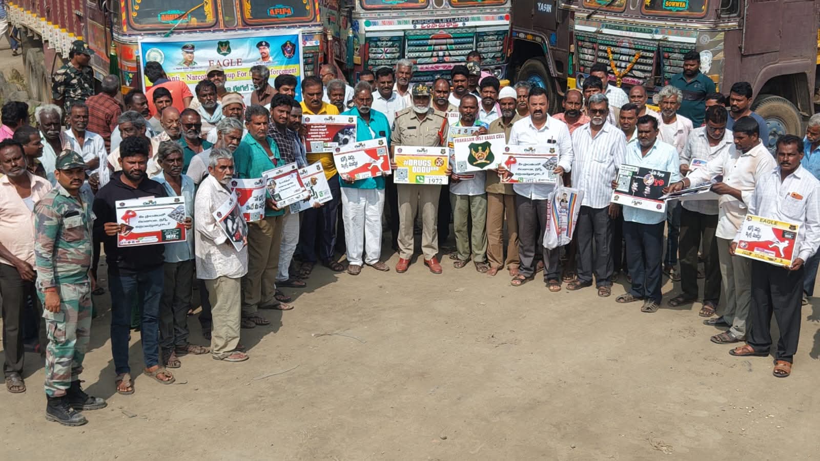 జిల్లాలో గంజాయి అక్రమ రవాణా గురించి ఎటువంటి సమాచారం ఉన్నా వెంటనే పోలీసులు ​టోల్ ఫ్రీ నంబర్: 1972 ​డయల్: 112 ​పోలీస్ వాట్సాప్ నంబర్: 9121102266. సమాచారం ఇచ్చిన వారి వివరాలు అత్యంత గోప్యంగా ఉంచబడతాయన్నారుఈ కార్యక్రమంలో లారీ యూనియన్ తరపున ప్రెసిడెంట్ కల్లూరి అంజిబాబు, సెక్రెటరీ కొమ్మూరి ప్రసాద్, ట్రెజరర్ వేమూరి శ్రీనివాసులు, నాడారి నాగరాజు మరియు పెద్ద సంఖ్యలో డ్రైవర్లు, కార్మికులు హాజరయ్యారు.