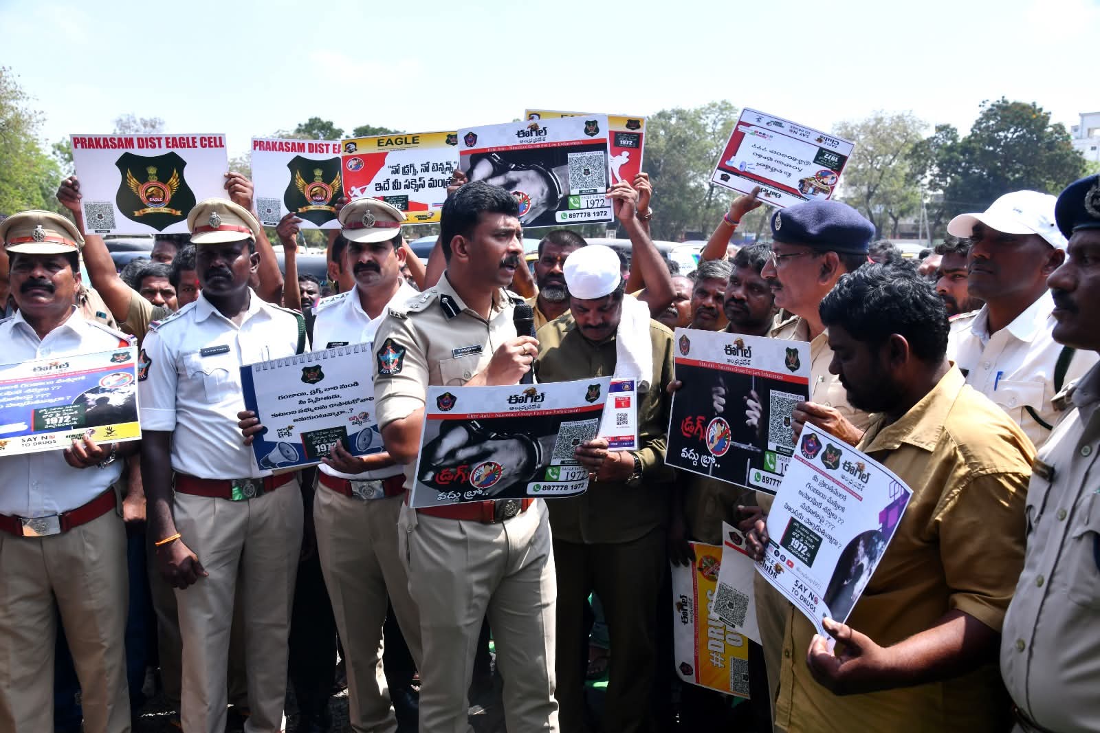 మాదకద్రవ్యాల అక్రమ రవాణా, నిర్ములనే లక్ష్యంగా జిల్లా పోలీస్ శాఖ ప్రత్యేక చర్యలు చేపడుతోంది. మంగళవారం జిల్లా పోలీస్ పరేడ్ గ్రౌండ్ లో జరిగిన కార్యక్రమంలో గంజాయి వంటి మాదక ద్రవ్యాల వాడకం వలన కలిగే అనర్ధాలు, దుష్పరిణామాలు, ఎదుర్కోవాల్సిన చట్టపరమైన చర్యలు మరియు శిక్షలు పై అవగాహన కల్పించారు. మాదకద్రవ్యాల వినియోగం వలన ప్రజల ఆరోగ్యానికి కలిగే నష్టాలను గురించి, యువత మత్తుకు బానిసవ్వడం వలన భవిష్యత్తులో ఏవిధంగా వారి జీవితాలు పాడవుతాయో కూడా వివరించటం జరిగింది.గంజాయి మరియు మాదకద్రవ్యాల అక్రమ రవాణా సమాజానికి పెద్ద ప్రమాదమని తెలిపారు. యువతను మత్తు పదార్థాల బారిన పడకుండా కాపాడాల్సిన బాధ్యత ప్రతి ఒక్కరిపై ఉందని, ఈ దిశగా పోలీస్ శాఖ నిరంతరం చర్యలు తీసుకుంటుందని స్పష్టం చేశారు. మాదకద్రవ్యాలకు దూరంగా ఉండాలని, చెడు అలవాట్ల బారిన పడకుండా ఆరోగ్యకరమైన జీవనం గడపాలని “డ్రగ్స్ వద్దు బ్రో” అనే సందేశాన్ని ఆటో డ్రైవర్లకు తెలియజేశారు. మత్తు పదార్థాల నిర్మూలన ద్వారా ఆరోగ్యవంతమైన, నేరరహిత సమాజ నిర్మాణమే లక్ష్యంగా ప్రకాశం జిల్లా పోలీస్ శాఖ పనిచేస్తోందని జిల్లా ఎస్పీ తెలిపారు.గంజాయి లేదా ఇతర మత్తు పదార్థాలను రవాణా చేసే, విక్రయించే, నిల్వ చేసే లేదా వినియోగించే వ్యక్తులపై చట్టపరమైన చర్యలు తీసుకుంటామని హెచ్చరించారు. గంజాయి మరియు మాదకద్రవ్యాల సమాచారం ఉంటే వెంటనే టోల్ ఫ్రీ నంబర్ 1972, డయల్ 112, లేదా పోలీస్ వాట్సాప్ నంబర్ 9121102266 కు తెలియజేయవచ్చు. సమాచారం ఇచ్చిన వారి వివరాలు గోప్యంగా ఉంచబడతాయని పోలీసులు తెలియజేశారు.ఈ కార్యక్రమంలో ఒంగోలు డిఎస్పీ ఆర్.శ్రీనివాసరావు, ఎఆర్.డీఎస్పీ కె.శ్రీనివాసరావు, ఒంగోలు ట్రాఫిక్ ఇన్స్పెక్టర్ జగదీష్, ఒంగోలు వన్ టౌన్ సీఐ నాగరాజు, ఒంగోలు టు టౌన్ సీఐ శ్రీనివాసరావు, ఆర్ఐ రమణారెడ్డి, ట్రాఫిక్ ఎస్సై కోటయ్య,శ్రీనివాసరావు మరియు సిబ్బంది పాల్గొన్నారు