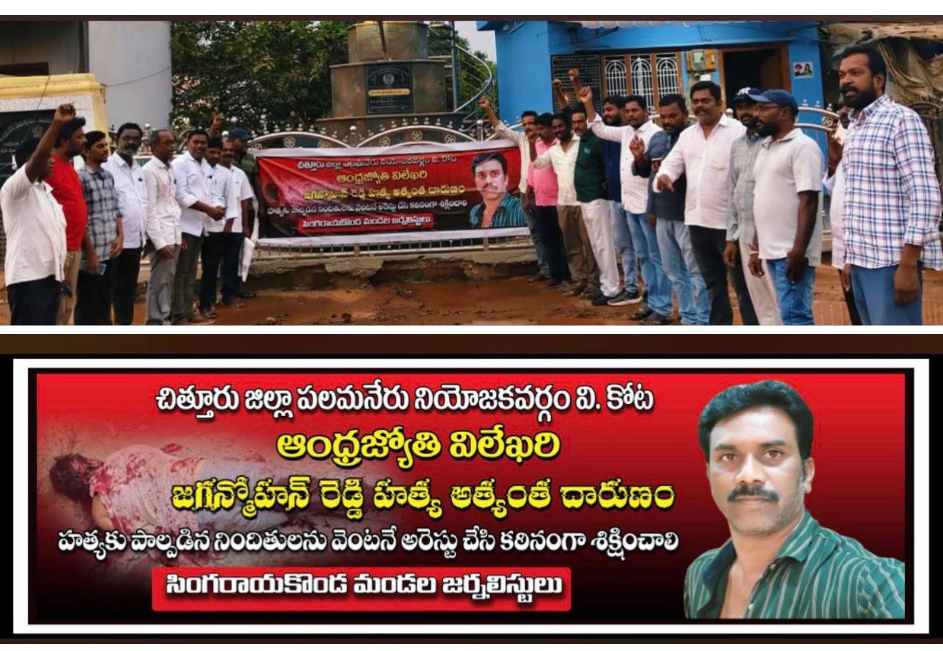చిత్తూరు జిల్లా పలమనేరు నియోజకవర్గంలో జరిగిన ఈ దారుణ ఘటనపై వెంటనే పూర్తి స్థాయి విచారణ జరిపించాలని వారు డిమాండ్ చేశారు. హత్యకు పాల్పడిన నిందితులను తక్షణమే అరెస్టు చేసి కఠినంగా శిక్షించాలని కోరారు.జర్నలిస్టుల భద్రత కోసం ప్రభుత్వం తక్షణమే కఠినమైన చట్టాలు అమలు చేయాలని ఈ సందర్భంగా వారు కోరారు.