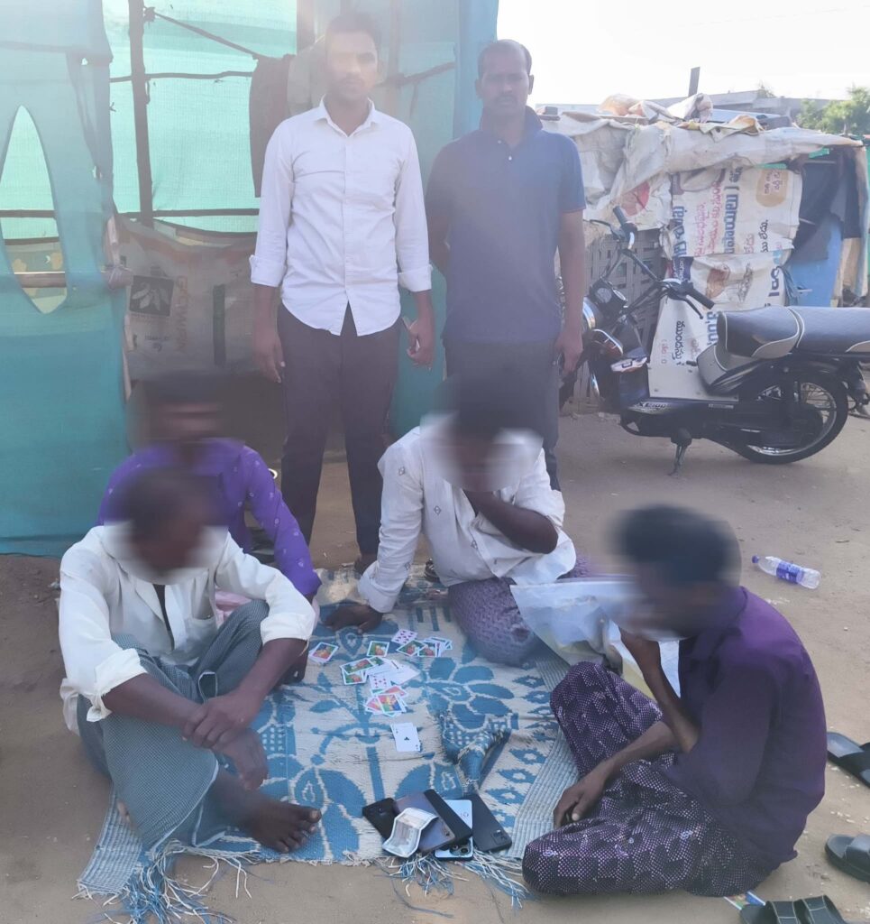 ప్రకాశం మరియు మార్కాపురం జిల్లాల్లో జూద కార్యకలాపాలపై పోలీసులు కఠిన చర్యలు చేపట్టారు. ఎస్పీ ఆదేశాల మేరకు జిల్లా వ్యాప్తంగా సాగుతున్న తనిఖీల్లో భాగంగా, రాయవరం మరియు వెల్లటూరు గ్రామాల్లో నిర్వహించిన దాడుల్లో మొత్తం 9 మందిని పోలీసులు అదుపులోకి తీసుకున్నారు.మార్కాపురం రూరల్: రాయవరం గ్రామ పరిధిలోని కొత్తముక్క ప్రాంతంలో పేకాట ఆడుతున్నారన్న సమాచారంతో మార్కాపురం రూరల్ పోలీసులు మెరుపు దాడి చేశారు. ఈ దాడిలో 5 మందిని పట్టుకుని, వారి వద్ద నుండి రూ.3,400/- నగదును స్వాధీనం చేసుకున్నారు.పొన్నాలూరు: ప్రకాశం జిల్లా వెల్లటూరు ఎస్సీ కాలనీ శివారులో సాగుతున్న జూద స్థావరంపై పొన్నాలూరు పోలీసులు దాడి నిర్వహించారు. ఇక్కడ 4 మందిని అరెస్ట్ చేసి, వారి వద్ద నుండి రూ.1,650/- నగదుతో పాటు 5 మొబైల్ ఫోన్లను సీజ్ చేశారు.ఈ సందర్భంగా పోలీస్ అధికారులు మాట్లాడుతూ.. జూదం, బెట్టింగ్ వంటి అసాంఘిక కార్యకలాపాల వల్ల అనేక కుటుంబాలు ఆర్థికంగా చితికిపోతున్నాయని ఆవేదన వ్యక్తం చేశారు. చట్టవిరుద్ధ కార్యకలాపాలకు పాల్పడే వారిపై కఠినమైన సెక్షన్ల కింద కేసులు నమోదు చేస్తామని హెచ్చరించారు. గ్రామాల్లో ఎక్కడైనా ఇలాంటి పనులు జరుగుతుంటే వెంటనే పోలీసులకు సమాచారం అందించాలని, సమాచారం ఇచ్చిన వారి వివరాలు గోప్యంగా ఉంచుతామని వారు తెలిపారు.