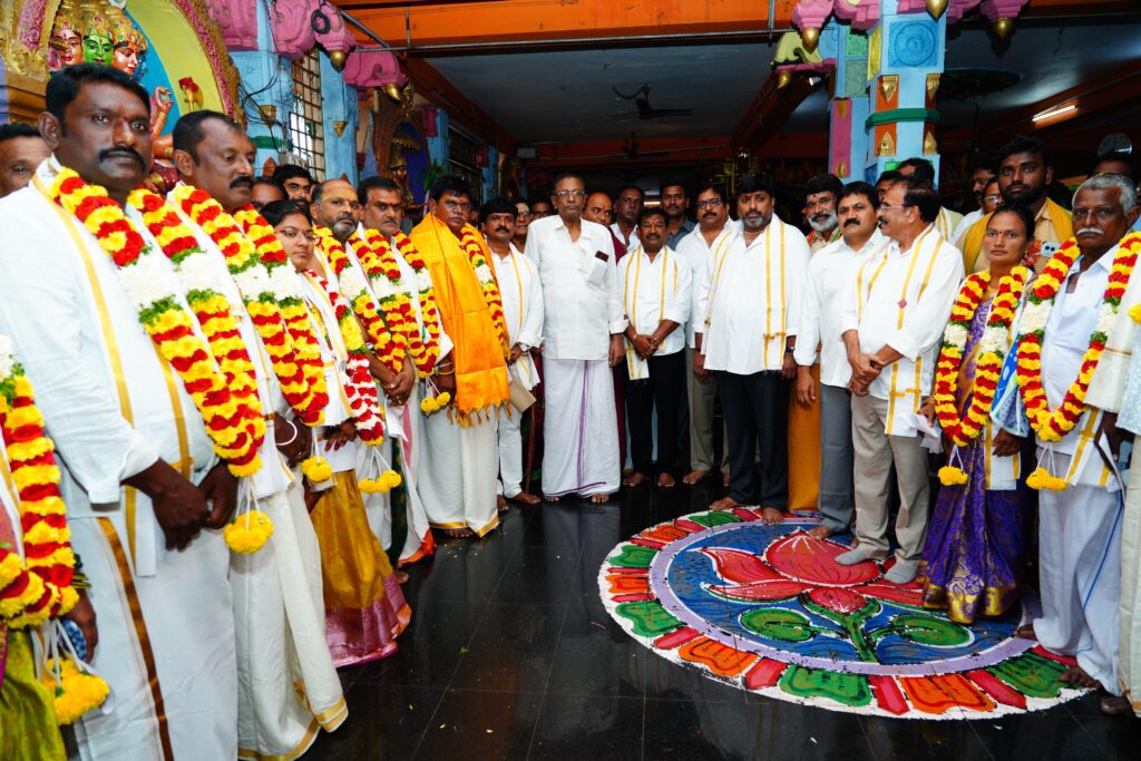 భక్తుల కోర్కెలు తీర్చే మహిమ గల తల్లి వల్లూరమ్మ అని రాష్ట్ర సాంఘిక సంక్షేమ శాఖ మంత్రి డా. డోలా శ్రీ బాల వీరాంజనేయస్వామి అన్నారు. సోమవారం నాడు ప్రకాశం జిల్లా టంగుటూరు మండలం వల్లూరులో వల్లూరమ్మ తల్లి దేవాలయంలో జరిగిన ఆలయ ధర్మకర్తల మండలి ప్రమాణ స్వీకార కార్యక్రమంలో మంత్రి డా. డోలా శ్రీ బాల వీరాంజనేయస్వామి, ఒంగోలు ఎమ్మెల్యే దామచర్ల జనార్దన్, మ్యారిటైం బోర్డు చైర్మన్ దామచర్ల సత్య, టూరిజం డెవలప్మెంట్ కార్పొరేషన్ చైర్మన్ నూకసాని బాలాజీ పాల్గొన్నారు. ఈ సంధర్బంగా ఆలయంలో ప్రత్యేక పూజలు నిర్వహించారు. అనంతరం మంత్రి డా. డోలా శ్రీ బాల వీరాంజనేయస్వామి మాట్లాడుతూ….భక్తుల కోర్కెలు తీర్చే మహిమ గల తల్లి వల్లూరమ్మ, ఈ ప్రాంతంలో కొన్ని వందల సంవత్సరాల భక్తుల పూజలందుకుంటూ, ప్రజలను, పశుసంపదను వ్యాధిబాధల నుండి, దుష్టశక్తుల నుండి కాపాడే చల్లనితల్లిగా వల్లూరమ్మ తల్లి విరాజిల్లుతోంది. రాష్ట్ర అభివృద్ధికి అహర్నిశలు శ్రమిస్తున్న ముఖ్యమంత్రి చంద్రబాబు నాయుడుకి వల్లూరమ్మ తల్లి ఆశీస్సులు ఎల్లప్పుడూ ఉండాలి. వల్లూరమ్మ తల్లి కరుణ, ఆశీర్వాదంతో ఆంధ్రప్రదేశ్ రాష్ట్రం ఎల్లప్పుడు సుభిక్షంగా ఉండాలని మంత్రి డా. డోలా శ్రీ బాల వీరాంజనేయస్వామి అన్నారు. ఈ సంధర్బంగా నూతనంగా ఎన్నికైన ఆలయ ధర్మకర్తల మండలి సభ్యులకు శుభాకాంక్షలు తెలిపిన మంత్రి…ధర్మకర్తల మండలి ఆలయ అభివృద్దికి కృషి చేయాలని పిలుపునిచ్చారు.