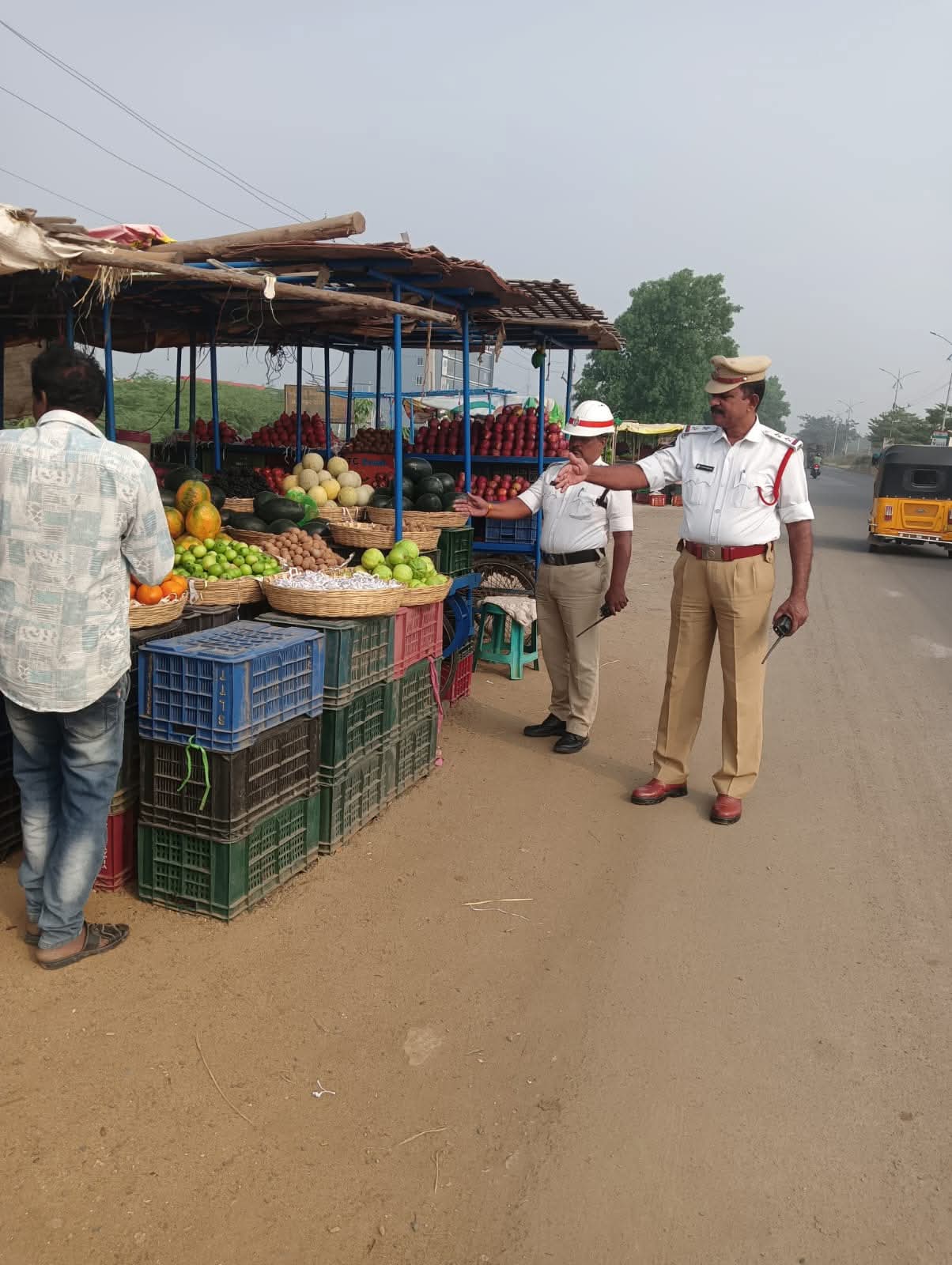 ప్రకాశం జిల్లా ఎస్పీ ఆదేశాల మేరకు, ప్రజల భద్రత మరియు రహదారి సౌకర్యం లక్ష్యంగా ప్రకాశం జిల్లా పోలీసులు ప్రత్యేక డ్రైవ్‌లు నిర్వహిస్తున్నారు. ఈ క్రమంలో ఒంగోలు ట్రాఫిక్ పోలీస్ స్టేషన్ పరిధిలోని నార్త్ బైపాస్ ప్రాంతంలో, గుంటూరు రోడ్డువైపు రోడ్డు మార్జిన్‌ను ఆక్రమించి ఏర్పాటు చేసిన రోడ్డుపక్క పండ్ల దుకాణాలపై ప్రత్యేక డ్రైవ్ నిర్వహించడం జరిగింది.ఈ డ్రైవ్‌ను ఒంగోలు ట్రాఫిక్ పోలీస్ స్టేషన్ ఎస్‌ఐ శ్రీ డి. శ్రీనివాసరావు నాయకత్వంలో, ట్రాఫిక్ సిబ్బంది సమన్వయంతో నిర్వహించారు. రోడ్డు మార్జిన్‌లను ఆక్రమించడం వల్ల ట్రాఫిక్ ఆటంకాలు ఏర్పడి ప్రమాదాలకు దారితీసే అవకాశం ఉండటంతో, ముందుగా దుకాణదారులకు అవగాహన కల్పించి, అనంతరం ఆక్రమణలను తొలగించడం జరిగింది.ఈ చర్యలతో నార్త్ బైపాస్ రోడ్డులో వాహనాల రాకపోకలు సజావుగా సాగుతూ, ప్రమాదాల నివారణకు దోహదపడుతుందని పోలీసులు తెలిపారు. భవిష్యత్తులో కూడా రోడ్డు మార్జిన్ ఆక్రమణలపై కఠిన చర్యలు కొనసాగుతాయని హెచ్చరించారు. ప్రజలు స్వచ్ఛందంగా సహకరించి రహదారి నియమాలను పాటించాలని ప్రకాశం జిల్లా పోలీసులు విజ్ఞప్తి చేశారు.ప్రజల భద్రత, ట్రాఫిక్ సాఫీగా నడవడమే లక్ష్యంగా ప్రకాశం జిల్లా పోలీస్ శాఖ నిరంతరం పనిచేస్తోందని ఈ సందర్భంగా తెలిపారు.