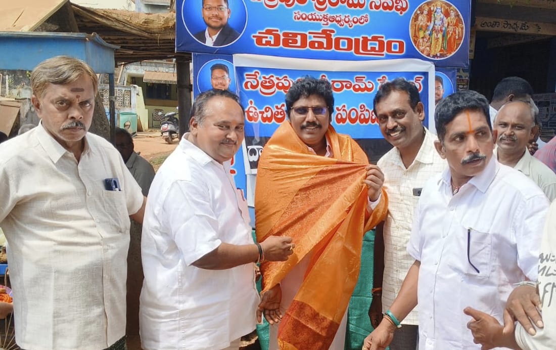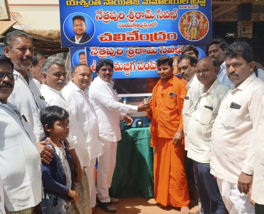 ఉగాది పండుగ పర్వదినాన్ని పురస్కరించుకొని గుడ్లూరు మండల కేంద్రంలో బస్టాండ్ సెంటర్లో ఉన్న శ్రీ పొట్టి శ్రీరాములు గారి విగ్రహం వద్ద యశ్వంత్ సాయి తేజ మెమోరియల్ ట్రస్ట్ మరియు నేత్రపురి శ్రీరామసేవక్ సంయుక్త ఆధ్వర్యంలో మంచినీటి చలివేంద్రము మరియు ఉచిత మజ్జిగ పంపిణి కార్యక్రమం ఏర్పాటు చేయటం జరిగింది. ఈ కార్యక్రమాన్ని గుడ్లూరు ఎంపీడీవో వై వెంకటేశ్వరరావు గురువారం ఉదయం 11:10 నిమిషాలకు ప్రారంభించడం జరిగింది. ఎంపీడీవో గారు వారి చేతుల మీదుగా గ్రామస్తులకు మంచినీరు మరియు మజ్జిగ అందించడం జరిగింది. ఈ సందర్భంగా యశ్వంత్ సాయి తేజ మెమోరియల్ ట్రస్ట్ అధ్యక్షులు అద్దంకి అజయ్ బాబు మాట్లాడుతూ వేసవికాలం ప్రారంభమైందని ఈ వేసవిలో వివిధ పనుల నిమిత్తం మండల కేంద్రానికి వచ్చే ప్రజల యొక్క దాహార్తిని తీర్చాలన్న సంకల్పంతో ఈ మంచినీటి చలివేంద్రం ప్రారంభించడం చాలా సంతోషకరంగా ఉందని తెలియజేశారు, నేత్రపురి శ్రీరామసేవక్ సభ్యులు ఎయిర్టెల్ చిన్న మాట్లాడుతూ గత సంవత్సరం కూడా మేము ఈ మంచినీటి చలివేంద్రాన్ని మరియు ఉచిత మజ్జిగ పంపిణీ కార్యక్రమాన్ని నిరంతరాయంగా నాలుగు నెలల పాటు నిర్వహించి మండలంలోని ప్రజల మన్ననలు పొందామని, ఈ సంవత్సరం మా మిత్రులు అద్దంకి అజయ్ బాబు నిర్వహిస్తున్నటువంటి యశ్వంత్ సాయి తేజ మెమోరియల్ ట్రస్ట్ మరియు నేత్రపురి శ్రీరామసేవక్ సంయుక్త ఆధ్వర్యంలో ఈ మంచినీటి చలివేంద్రం మరియు ఉచిత చల్లని మజ్జిగ పంపిణీ కార్యక్రమం నిర్వహించడం జరుగుతుందని, ఈ కార్యక్రమానికి ప్రతి ఒక్కరూ సహకరించాలని, దాతల సహకారంతోనే ఏ సేవ కార్యక్రమం అయినా విజయవంతంగా నడుస్తుందని తెలియజేశారు. మిత్రులు అజయ్ బాబు వారు నిర్వహిస్తున్నటువంటి యశ్వంత్ సాయి తేజ మెమోరియల్ ట్రస్టు ద్వారా ఎన్నో సేవా కార్యక్రమాలను నిర్వర్తించి అందరి చేత మన్ననలు పొంది ఉన్నారు. అలాంటి మా మిత్రులతో కలిసి సేవా కార్యక్రమాలు నిర్వర్తించడం,మా రెండు సేవా సంస్థల సంయుక్త ఆధ్వర్యంలో ఈ సేవా కార్యక్రమన్ని నిర్వర్తించటం చాలా సంతోషకరంగా ఉందని తెలియజేశారు. ఈ కార్యక్రమానికి విచ్చేసిన ఎంపీడీవో వెంకటేశ్వరరావుని ఈ సేవా కార్యక్రమాలు నిర్వహిస్తున్నటువంటి అజయ్ బాబు ఎయిర్టెల్ చిన్న ఇన్నమరి సుధాకర్ శాలువాతో సత్కరించి ధన్యవాదాలు తెలియజేశారు. ఈ కార్యక్రమంలో యశ్వంత్ సాయి తేజ మెమోరియల్ ట్రస్ట్ అధ్యక్షులు అద్దంకి అజయ్ బాబు ,, గ్రామ తెలుగుదేశం పార్టీ అధ్యక్షులు ఉన్న వెంకటేశ్వర్లు , దామా వెంకటేశ్వర్లు ,జోన్నలగడ్డ రవణమ్మ,రావూరి వేణుగోపాల్, పువ్వాడ వేణుగోపాల్, జంపాల ప్రసాదు మలిశెట్టి ఏసుబాబు గుడ్లూరు మండల బిజెపి మాజీ అధ్యక్షులు ఇన్నమూరి. సుధాకర్, మండల జనసేన పార్టీ అధ్యక్షులు సన్నిశెట్టి గిరిబాబు,