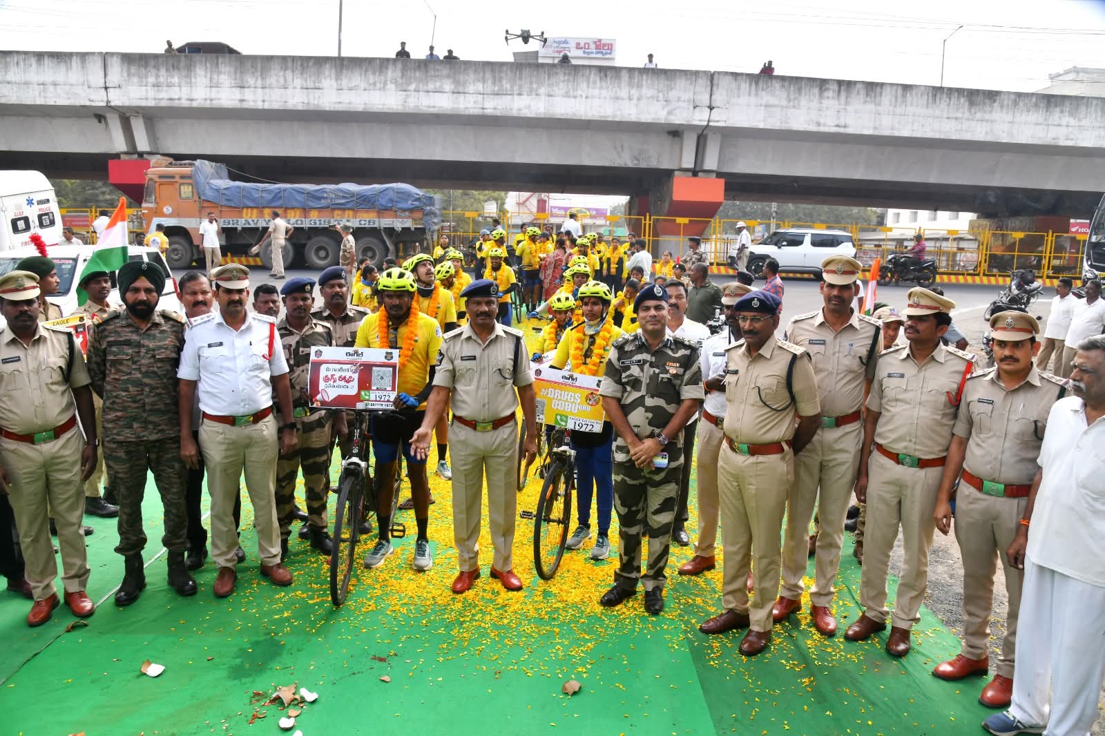 దేశ శాంతి భద్రతల పరిరక్షణలో కేంద్ర పారిశ్రామిక భద్రతా దళం (సీఐఎస్ఎఫ్) కీలకమైన పాత్ర పోషిస్తున్నదని, సురక్షిత తీరం, తీర ప్రాంతాల పరిరక్షణతో పాటు మత్తు పదార్థాల వినియోగం వల్ల కలిగే అనర్థాలపై ప్రజలకు అవగాహన కల్పించాలనే లక్ష్యంతో సీఐఎస్ఎఫ్ సైకిల్ ర్యాలీని నిర్వహిస్తున్నట్లు తెలిపారు. వందేమాతరం కోస్టల్ సైక్లోథాన్ – 2026 పేరిట చేపట్టిన ఈ సైకిల్ యాత్ర, తొమ్మిది రాష్ట్రాల్లో 6,500 కిలోమీటర్ల దూరం ప్రయాణించనుంది. ఈ ర్యాలీని జనవరి 28వ తేదీన కోల్‌కతా నుంచి ప్రారంభించి, కేరళ రాష్ట్రం కొచ్చి వరకు కొనసాగించి ఫిబ్రవరి 23వ తేదీన ముగించనున్నారు. ఈ నేపథ్యంలో మంగళవారం ఉదయం సీఐఎస్ఎఫ్ సైకిల్ ర్యాలీ ఒంగోలు జిల్లా పోలీస్ కార్యాలయానికి చేరుకుంది. ఈ సందర్భంగా ప్రకాశం జిల్లా ఎస్పీ వి.హర్షవర్ధన్ రాజు, ఐపీఎస్. ఆదేశాల మేరకు పోలీస్ అధికారులు, ఎన్‌సీసీ విద్యార్థులు సీఐఎస్ఎఫ్ జవాన్లకు ఘన స్వాగతం పలికారు.ఈ సందర్భంగా సీఐఎస్ఎఫ్ సీనియర్ కమాండెంట్ శ్రీ సంజీత్ కుమార్ గారు మాట్లాడుతూ, 100 మందికి పైగా సైకిలిస్టులతో ఈ సైకిల్ ర్యాలీని నిర్వహిస్తున్నామని తెలిపారు. సముద్ర తీర ప్రాంతాల రక్షణతో పాటు, దేశంలోని యువత మాదకద్రవ్యాల వినియోగం వల్ల ఎదుర్కొనే అనర్థాలపై విస్తృత అవగాహన కల్పించడమే ఈ ర్యాలీ ప్రధాన లక్ష్యమన్నారు. ఈ సైకిల్ ర్యాలీని ప్రతిరోజూ సుమారు 150 నుంచి 160 కిలోమీటర్ల మేర కొనసాగిస్తున్నామని, సీఐఎస్ఎఫ్ సిబ్బంది తమ ధైర్య సాహసాలు, క్రమశిక్షణతో ర్యాలీని విజయవంతంగా ముందుకు తీసుకెళ్తున్నారని వివరించారు. తీర ప్రాంతాల్లో నివసిస్తున్న ప్రజలకు తీర భద్రత ప్రాధాన్యత, దేశ రక్షణలో వారి పాత్ర, భద్రతా దళాలకు వారు అందించవలసిన సహకారం గురించి ఈ ర్యాలీ ద్వారా వివరించబడుతోందన్నారు. దేశ భద్రతలో కోస్టల్ సెక్యూరిటీకి అత్యంత ప్రాధాన్యత ఉందని, అందుకు ప్రజల సంపూర్ణ సహకారం అవసరమన్నారు. వందేమాతరం రచించి 150 ఏళ్లు పూర్తి చేసుకున్న సందర్భంగా మాతృభూమి రక్షణ, దేశం కోసం త్యాగాలు చేయాల్సిన బాధ్యత వంటి అంశాలను ప్రజల్లోకి తీసుకెళ్లే ఉద్దేశంతో ఈ సైకిల్ యాత్రను చేపట్టినట్లు తెలిపారు. ఇప్పటివరకు 14 రోజులుగా నిరంతరంగా సైకిల్ ర్యాలీ కొనసాగుతున్నట్లు ఆయన పేర్కొన్నారు. ఈ ర్యాలీలో మహిళా జవాన్లు కూడా ఉత్సాహంగా పాల్గొంటుండటం ప్రత్యేక ఆకర్షణగా నిలుస్తోందన్నారు.ఈ కార్యక్రమంలో సిఐఎస్ఎఫ్ సీనియర్ కమాండెంట్ సంజీత్ కుమార్, అసిస్టెంట్ కమాండెంట్ విక్రమ్ సింగ్, ఎస్బి డిఎస్పి చిరంజీవి, ఒంగోలు డిఎస్పీ ఆర్.శ్రీనివాసరావు, ఏఆర్ డిఎస్పీ శ్రీనివాసరావు, ఒంగోలు తాలూకా సీఐ విజయకృష్ణ, ఒంగోలు ట్రాఫిక్ సీఐ జగదీష్,ఎస్సైలు, ఆర్ఐలు సీతారామి రెడ్డి, రమణారెడ్డి మరియు సిబ్బంది పాల్గొన్నారు.