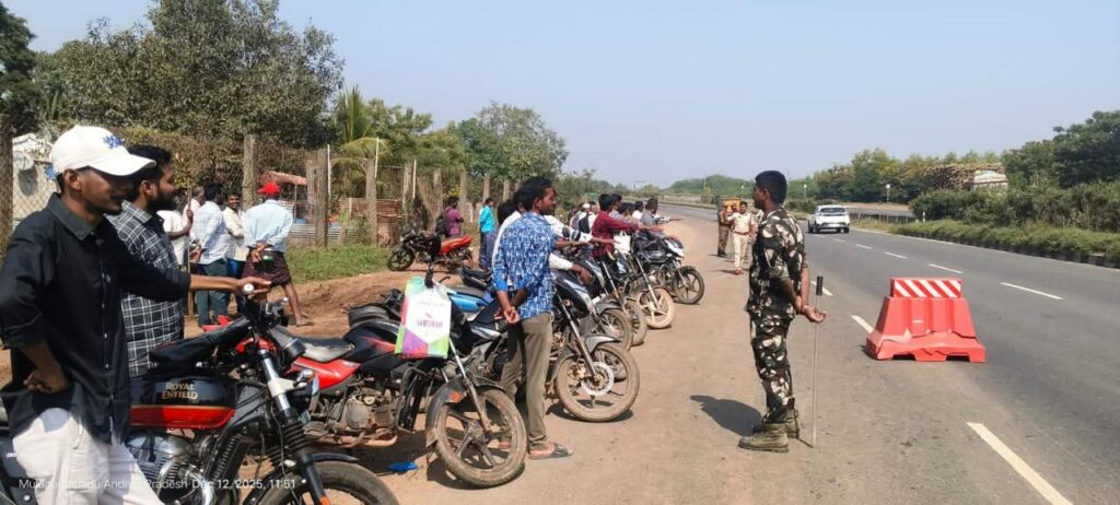 ప్రకాశం జిల్లా ఎస్పీ సూచనల మేరకు, జరుగుమల్లి పోలీస్ స్టేషన్ పరిధిలోని నేషనల్ హైవే–16 (NH-16) పై ట్రాఫిక్ నిబంధనలు ఉల్లంఘిస్తున్న వాహనదారులపై విస్తృతంగా ప్రత్యేక డ్రైవ్ నిర్వహించారు. ఈ డ్రైవ్ ను జరుగుమల్లి పోలీస్ స్టేషన్ ఎస్ఐ పర్యవేక్షణలో సమర్థవంతంగా చేపట్టారు.డ్రైవ్ సందర్భంగా హైవే పై వేగంగా ప్రయాణించడం, హెల్మెట్ లేకుండా ప్రయాణం, సీట్బెల్ట్ లేకపోవడం, ఓవర్లోడింగ్, డ్రంక్ అండ్ డ్రైవ్, వాహన పత్రాల లేమి, నిర్లక్ష్యంగా డ్రైవింగ్, ట్రాఫిక్ సిగ్నల్ ఉల్లంఘనలు వంటి నిబంధనల ఉల్లంఘనలను గుర్తించి, సంబంధిత డ్రైవర్లపై చట్టపరమైన చర్యలు తీసుకున్నారు.ట్రాఫిక్ నియంత్రణ, ప్రమాదాల నివారణ, ప్రజల ప్రాణాల రక్షణ కోసం ఈ ప్రత్యేక డ్రైవ్ నిర్వహించామని పోలీసులు తెలిపారు. హైవేలపై చిన్న నిర్లక్ష్యమే పెద్ద ప్రమాదాలకు దారితీస్తుందని గుర్తు చేస్తూ, వాహనదారులు తప్పనిసరిగా హెల్మెట్, సీట్బెల్ట్, వాహన పత్రాలు, సురక్షిత వేగ పరిమితి వంటి నియమాలు ఖచ్చితంగా పాటించాలని విజ్ఞప్తి చేశారు.ఈ కార్యక్రమంలో పాల్గొన్న పోలీసులు నేర నియంత్రణతో పాటు ప్రజల భద్రత కోసం ఎల్లప్పుడూ సిద్ధంగా ఉంటామని తెలిపారు. ప్రజల సహకారమే రోడ్డు భద్రతకు ప్రధాన ఆస్తి అని, ట్రాఫిక్ నిబంధనలు ప్రతి ఒక్కరూ కచ్చితంగా పాటించాలని సూచించారు.ప్రకాశం జిల్లా పోలీసులు ఇటువంటి డ్రైవ్లను నిరంతరం కొనసాగిస్తూ, రోడ్డు ప్రమాదాలను తగ్గించేందుకు మరింత కృషి చేయనున్నట్లు తెలిపారు.