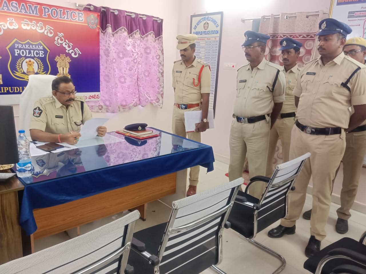 ప్రకాశం జిల్లా ఎస్పీ ఆదేశాల మేరకు, జిల్లాలో పోలీస్ పరిపాలనను మరింత బలోపేతం చేయడం, ప్రజలకు మెరుగైన సేవలు అందించాలనే లక్ష్యంతో SDPO కందుకూరు మర్రిపూడి పోలీస్ స్టేషన్ను సందర్శించి విస్తృత తనిఖీలు నిర్వహించారు.ఈ సందర్భంగా పోలీస్ స్టేషన్లోని కేసుల రికార్డులు, వివిధ రిజిస్టర్లు, ఫైళ్ల నిర్వహణ, విధుల నిర్వహణ తీరును సవివరంగా పరిశీలించారు. రికార్డులు మరింత క్రమబద్ధంగా, పారదర్శకంగా ఉండేలా చర్యలు తీసుకోవాలని, ప్రజలకు త్వరితగతిన న్యాయం అందే విధంగా పని చేయాలని పోలీస్ సిబ్బందికి స్పష్టమైన సూచనలు ఇచ్చారు.శాంతి భద్రతల పరిరక్షణలో మరింత అప్రమత్తంగా ఉండాలని, నేరాల నివారణకు ముందస్తు చర్యలు తీసుకోవాలని, ప్రజలతో మర్యాదపూర్వకంగా వ్యవహరిస్తూ విశ్వాసాన్ని పెంపొందించాలని ఆదేశించారు.ఈ తనిఖీ కార్యక్రమంలో మర్రిపూడి ఎస్ఐ గారు పాల్గొని, స్టేషన్ పరిధిలో చేపడుతున్న పోలీస్ చర్యలు, ప్రజా భద్రతకు సంబంధించిన కార్యక్రమాల వివరాలను ఎస్డీపీఓ కి వివరించారు. ఇటువంటి తనిఖీలు నిరంతరం కొనసాగుతాయని ప్రకాశం జిల్లా పోలీస్ అధికారులు తెలిపారు.