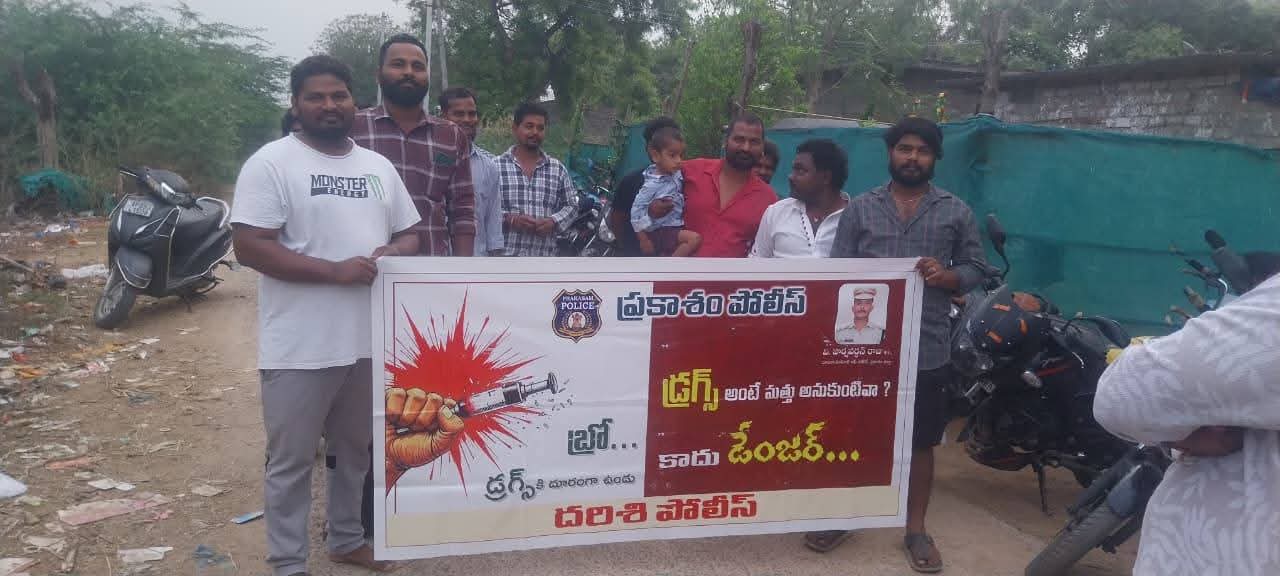 మాదక ద్రవ్యాల నిర్మూలన, శాంతి భద్రతల పరిరక్షణ, నేరాల నియంత్రణ మరియు అసాంఘిక కార్యకలాపాల కట్టడిని లక్ష్యంగా చేసుకుని ప్రకాశం జిల్లా ఎస్పీ శ్రీ వి. హర్షవర్ధన్ రాజు, ఐపీఎస్ ఆదేశాల మేరకు దర్శి సీఐ వై. రామారావు, కురిచేడు, దొనకొండ ఎస్సైలు శివ మరియు త్యాగరాజులతో మరియు పోలీసు సిబ్బంది కలిసి కురిచేడు పోలీస్ స్టేషన్ పరిధిలోని బోధనంపాడు కాలనీలో మరియు పరిసర ప్రాంతాల్లో ‘ఆపరేషన్ వజ్రా ప్రహార్’లో భాగంగా కార్డన్ & సెర్చ్ ఆపరేషన్ నిర్వహించారు.తనిఖీలలో భాగంగా గంజాయి మరియు ఇతర మాదక ద్రవ్యాల నిల్వ, విక్రయాలపై ప్రత్యేక దృష్టి సారించి ఇళ్లు, దుకాణాలు, పాత ముద్దాయిల నివాసాల్లో సోదాలు నిర్వహించారు. సరైన పత్రాలు, నంబర్ ప్లేట్లు లేని 21 మోటార్ సైకిళ్లను స్వాధీనం చేసుకుని, కొందరికి చలానాలు విధించారు. ఫింగర్ ప్రింట్ పరికరాలతో అనుమానితులను తనిఖీ చేశారు. రోడ్డు భద్రత, మాదకద్రవ్యాల దుష్ప్రభావాలు, సైబర్ నేరాలు, మహిళల భద్రతపై ప్రజలకు అవగాహన కల్పించారు. “డ్రగ్స్ వద్దు బ్రో” నినాదంతో ర్యాలీ నిర్వహించి, గంజాయి నిర్మూలనకు ప్రజలు ప్రతిజ్ఞ చేశారు. దర్శి సీఐ వై. రామారావు మాట్లాడుతూ గంజాయి మరియు మాదకద్రవ్యాల వినియోగం వ్యక్తిగత జీవితానికే కాకుండా కుటుంబాలు, సమాజంపై తీవ్ర ప్రభావం చూపుతుందని, ముఖ్యంగా యువత మత్తు పదార్థాలకు దూరంగా ఉండి విద్య, క్రీడలు, ఉపాధి వంటి వాటిపై దృష్టి సారించాలని సూచించారు. డ్రగ్స్ విక్రయం లేదా వినియోగానికి పాల్పడితే చట్టపరమైన చర్యలు తీసుకుంటామని హెచ్చరించారు. ప్రతి ఒక్కరు సైబర్ నేరాలపై అవగాహన కలిగి ఉండాలని, రోడ్డు భద్రతా నియమాలు తప్పక పాటించాలని సూచించారు.గంజాయి వంటి మాదకద్రవ్యాలు సమాచారం ఉంటే వెంటనే స్థానిక పోలీసులు లేదా డైల్112 లేదా పోలీస్ వాట్స్అప్ నెంబర్ 9121102266 తెలియజేయాలని ప్రజలను కోరారు