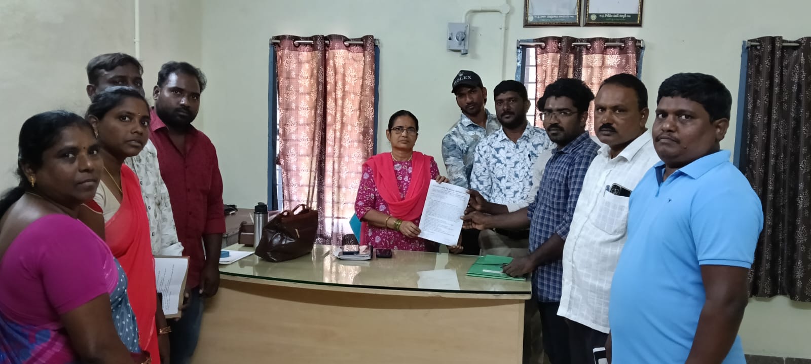టంగుటూరు మండలం మహాత్మా గాంధీ జాతీయ గ్రామీణ ఉపాధి హామీ పథకంలో గత 19 సంవత్సరాల నుండి ఫీల్డ్ అసిస్టెంట్లుగా విధులు నిర్వహిస్తున్న ఫీల్డ్ అసిస్టెంట్లు ఉపాధి కూలీలకు ఆర్థిక భరోసా కల్పిస్తూ గ్రామపంచాయతీ స్థాయిలో సుస్థిర శాశ్వత వనరులు ఏర్పాటు గ్రామాల అభివృద్ధికి తోడ్పడుతున్నాం ఉపాధి హామీ పథకం దేశంలో ఆంధ్ర ప్రదేశ్ ను మొట్టమొదటి స్థానంలో నిలబెట్టడంలో ఫీల్డ్ అసిస్టెంట్ల కృషి కీలకమైనది ఫీల్డ్ అసిస్టెంట్లకు ఇస్తున్న వేతనం నెలకు 5745 రూపాయలు తో కుటుంబాలు బ్రతకడం కష్టంగా మారింది మా కుటుంబాలను పస్తుల నుండి కాపాడేందుకు కనీస వేతనం 26 వేల రూపాయలు చెల్లించాలని విజ్ఞప్తి చేస్తున్నాము రాష్ట్రంలో తెలుగుదేశం కూటమి ప్రభుత్వం అధికారంలోకి వస్తే తమ సమస్యలు తీరుతాయని ఫీల్డ్ అసిస్టెంట్లు భావించారు కానీ గత ప్రభుత్వంలో జరిగినట్లుగానే గత ఏడాది కాలంలో ఫీల్డ్ అసిస్టెంట్ లో అక్రమ తొలగింపులు, పెద్ద ఎత్తున జరిగాయి ఇలాంటి ఒత్తిడి వలన ఫీల్డ్ అసిస్టెంట్ లో ఆత్మహత్యలకు పాల్పడుతున్నారు. హత్యలకు గురవుతున్నారు అనేక చోట్ల బలవంతపు రాజీనామాలు చేయించుకున్నారు దీనితో ఫీల్డ్ అసిస్టెంట్లు నిత్యం అభద్రతతో బ్రతుకులీడుస్తున్నారు కావున ఫీల్డ్ అసిస్టెంట్లు పై రాజకీయ వేధింపులు అరికట్టి ఉద్యోగ భద్రత కల్పించాలని మనవి చేస్తున్నాము ఫీల్డ్ అసిస్టెంట్లు ఎదుర్కొంటున్న ఈ క్రింది పేర్కొన్న న్యాయమైన డిమాండ్లను పరిష్కరించేందుకు అవసరమైన ప్రభుత్వ ఉత్తర్వులు జారీ చేసి మా కుటుంబాలకు న్యాయం చేయాలని కోరుచున్నాము ఈ సమస్యలను పరిష్కరించాలని కోరుతూ తెలియజేస్తున్నాం ఇప్పటికైనా తమరు వెంటనే స్పందించి సమస్యను పరిష్కరిస్తారని ఆశిస్తున్నాము మ్యాన్డేస్ విధానం రద్దు చేయాలి మండల స్థాయిలో బదిలీల సౌకర్యం కల్పించాలి ఫీల్డ్ అసిస్టెంట్లకు కనీస వేతనం 26,000 చెల్లించాలి అర్హత అనుభవం కలిగిన ఫీల్డ్ అసిస్టెంట్లకు పదోన్నతులు కల్పించాలి