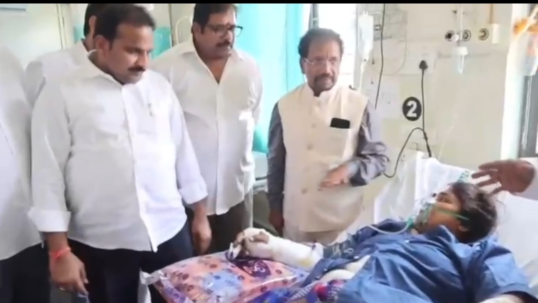 మార్కాపురం వద్ద జరిగిన బస్సు ప్రమాదంలో గాయపడి, ఒంగోలు రిమ్స్ ఆసుపత్రిలో చికిత్స పొందుతున్న బాధితులను మంత్రులు డోలా బాలవీరాంజనేయ స్వామి, గొట్టిపాటి రవికుమార్, ఎమ్మెల్యేలు ఇంటూరి నాగేశ్వరరావు, దామచర్ల జనార్ధన్, బి ఎన్ విజయ్ కుమార్, ఒంగోలు అర్బన్ డెవలప్మెంట్ అథారిటీ చైర్మన్ షేక్ రియాజ్ లు శుక్రవారం పరామర్శించారు. మొత్తం 13 మంది బాధితులతో మాట్లాడి ప్రమాదం వివరాలు తెలుసుకున్నారు. కందుకూరు నియోజకవర్గం వలేటివారిపాలెం మండలం అంకభూపాలపురం గ్రామానికి చెందిన బత్తుల మణెమ్మ కూడా ఈ ప్రమాదంలో తీవ్రంగా గాయపడి రిమ్స్ లో చికిత్స పొందుతోంది. రెండు చేతులు విరిగిపోగా, లివర్ కు గాయం కావడంతో ఆపరేషన్ చేశారు. మంత్రులు సహచర ఎమ్మెల్యేలతో కలిసి, కందుకూరు ఎమ్మెల్యే ఇంటూరి నాగేశ్వరరావు ఆమెను పరామర్శించారు. డాక్టర్లతో మాట్లాడి చికిత్స వివరాలు తెలుసుకున్నారు. మణెమ్మ భర్త వెంకటయ్యతో మాట్లాడి ఆర్థిక సహాయం అందించారు. మణెమ్మ త్వరగా కోలుకోవాలని ఆకాంక్షించారు. అనంతరం ఎమ్మెల్యే నాగేశ్వరరావు మీడియాతో మాట్లాడుతూ బస్సు ప్రమాదంలో 14 మంది చనిపోవడం అత్యంత బాధాకరమైన సంఘటన అన్నారు. మృతుల కుటుంబాలకు ప్రగాఢ సానుభూతి తెలియజేస్తూ, గాయపడ్డవారు పూర్తిగా కోలుకునేంతవరకు ప్రభుత్వం అన్ని విధాలుగా చర్యలు తీసుకుంటుందని చెప్పారు. ఇలాంటి ప్రమాదం మరోసారి జరగకుండా అధికారులు చర్యలు తీసుకోవాలన్నారు. ఎమ్మెల్యే నాగేశ్వరరావు వెంట అంకభూపాలపురం టిడిపి సీనియర్ నాయకులు పెగడ శ్రీనివాసులు, బండారు సోమరాజు తదితరులు ఉన్నారు.