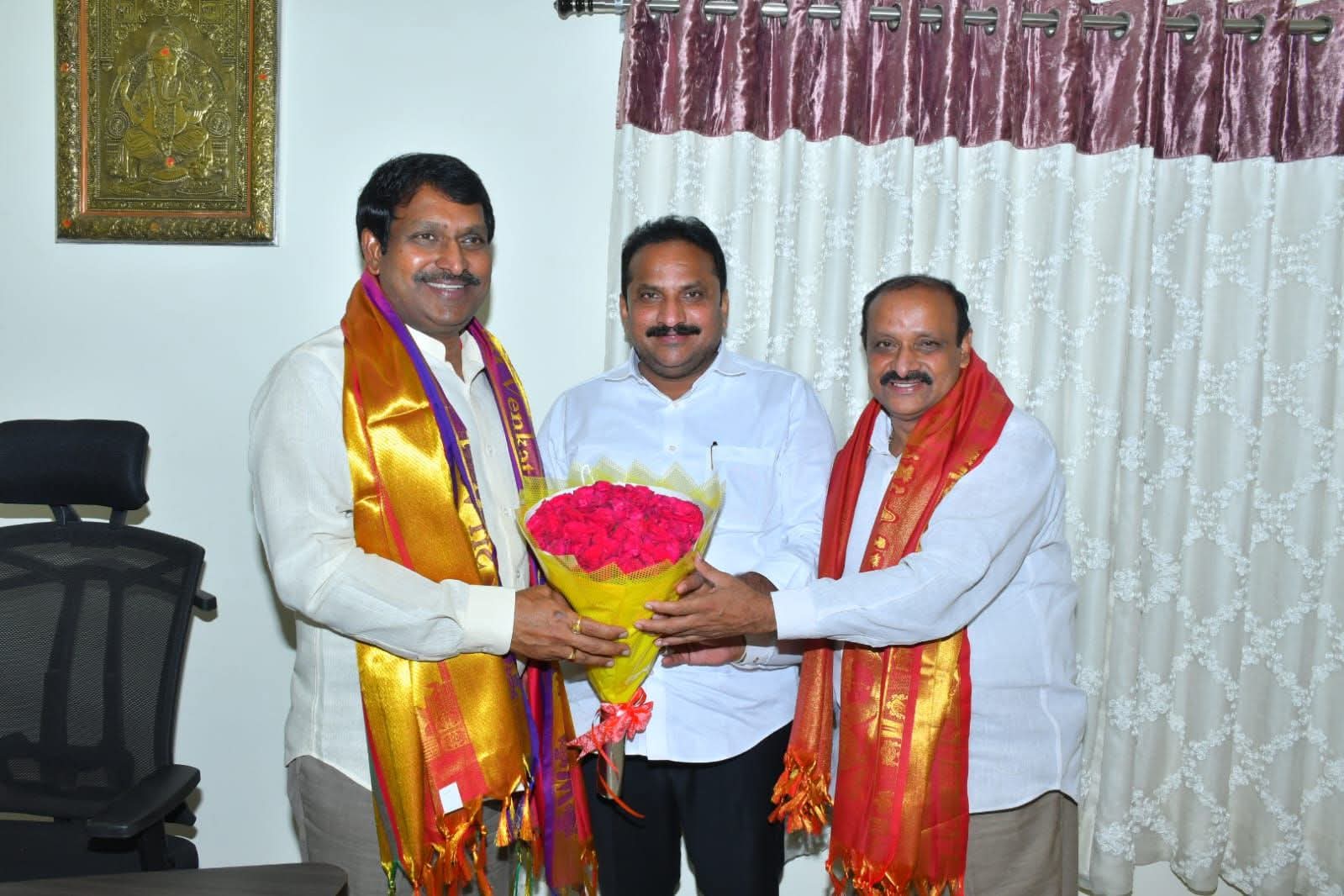తెలుగుదేశం పార్టీ నెల్లూరు పార్లమెంట్ అధ్యక్షుడిగా నియమితులైన బీద రవిచంద్ర ని కందుకూరు ఎమ్మెల్యే ఇంటూరి నాగేశ్వరరావు నెల్లూరులో మర్యాదపూర్వకంగా కలిశారు. పార్లమెంట్ అధ్యక్షుడిగా నియమితులైన సందర్భంగా, రవిచంద్ర ని శాలువాతో సత్కరించి శుభాకాంక్షలు తెలియజేశారు. అలాగే ప్రధాన కార్యదర్శిగా నియమితులైన చేజర్ల వెంకటేశ్వరరెడ్డి ని కూడా సత్కరించి శుభాకాంక్షలు తెలియజేశారు.