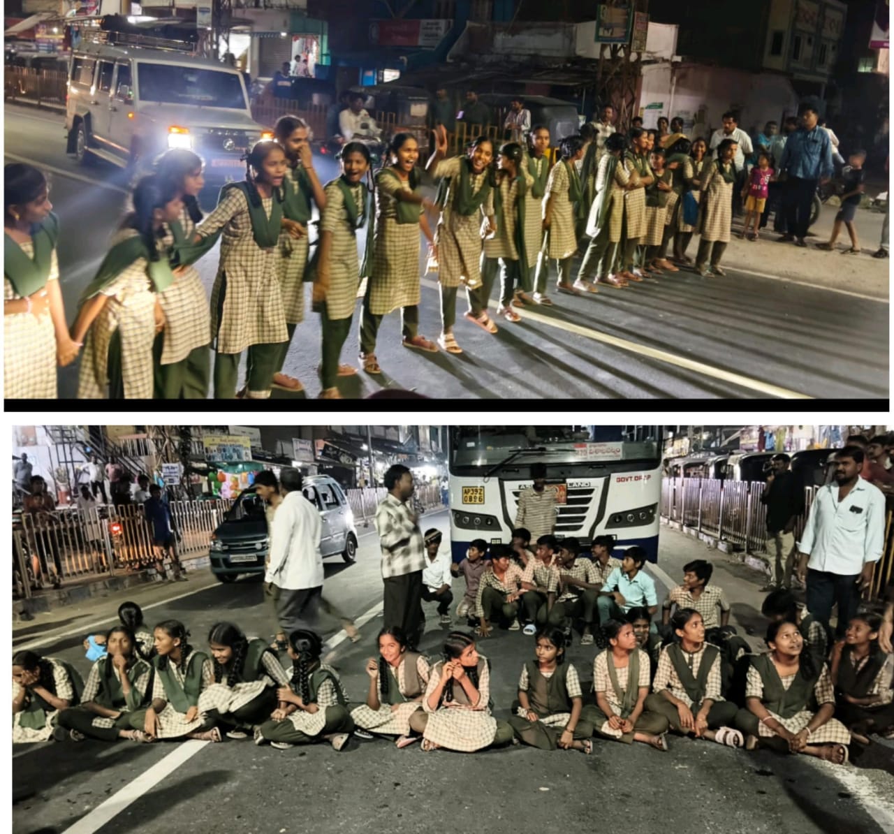 ప్రకాశంజిల్లా బేస్తవారిపేట మండలంలో ఉన్న ZPHS గర్ల్స్ స్కూల్ విద్యార్థినీలు సోమవారం ఉదయం బేస్తవారిపేట బస్టాండ్ వద్ద రోడ్డుపై ధర్నా నిర్వహించారు.