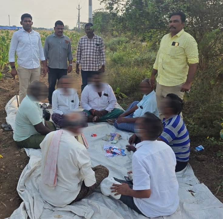 ప్రకాశం జిల్లా మద్దిపాడు పోలీస్ స్టేషన్ పరిధిలోని గ్రోత్ సెంటర్లో గుట్టుచప్పుడు కాకుండా సాగుతున్న జూదపు తావులపై పోలీసులు మెరుపు దాడి నిర్వహించారు. జిల్లా ఎస్పీ ఆదేశాల మేరకు, మద్దిపాడు ఎస్ఐ (SI) మరియు వారి సిబ్బంది పక్కా సమాచారంతో ఈ సోదాలు చేపట్టారు.ఈ దాడుల్లో జూదం ఆడుతున్న ఏడుగురు వ్యక్తులను పోలీసులు అదుపులోకి తీసుకున్నారు. వారి వద్ద నుండి రూ. 15,600/- నగదును మరియు జూదానికి ఉపయోగించిన ఇతర సామాగ్రిని స్వాధీనం చేసుకున్నారు. అసాంఘిక కార్యకలాపాలకు పాల్పడితే ఎంతటి వారైనా సరే కఠిన చర్యలు తప్పవని ఈ సందర్భంగా పోలీసులు హెచ్చరించారు. గ్రోత్ సెంటర్ వంటి పారిశ్రామిక ప్రాంతాల్లో శాంతిభద్రతలకు విఘాతం కలిగించే చర్యలపై నిరంతరం నిఘా ఉంటుందని పోలీసులు స్పష్టం చేశారు.