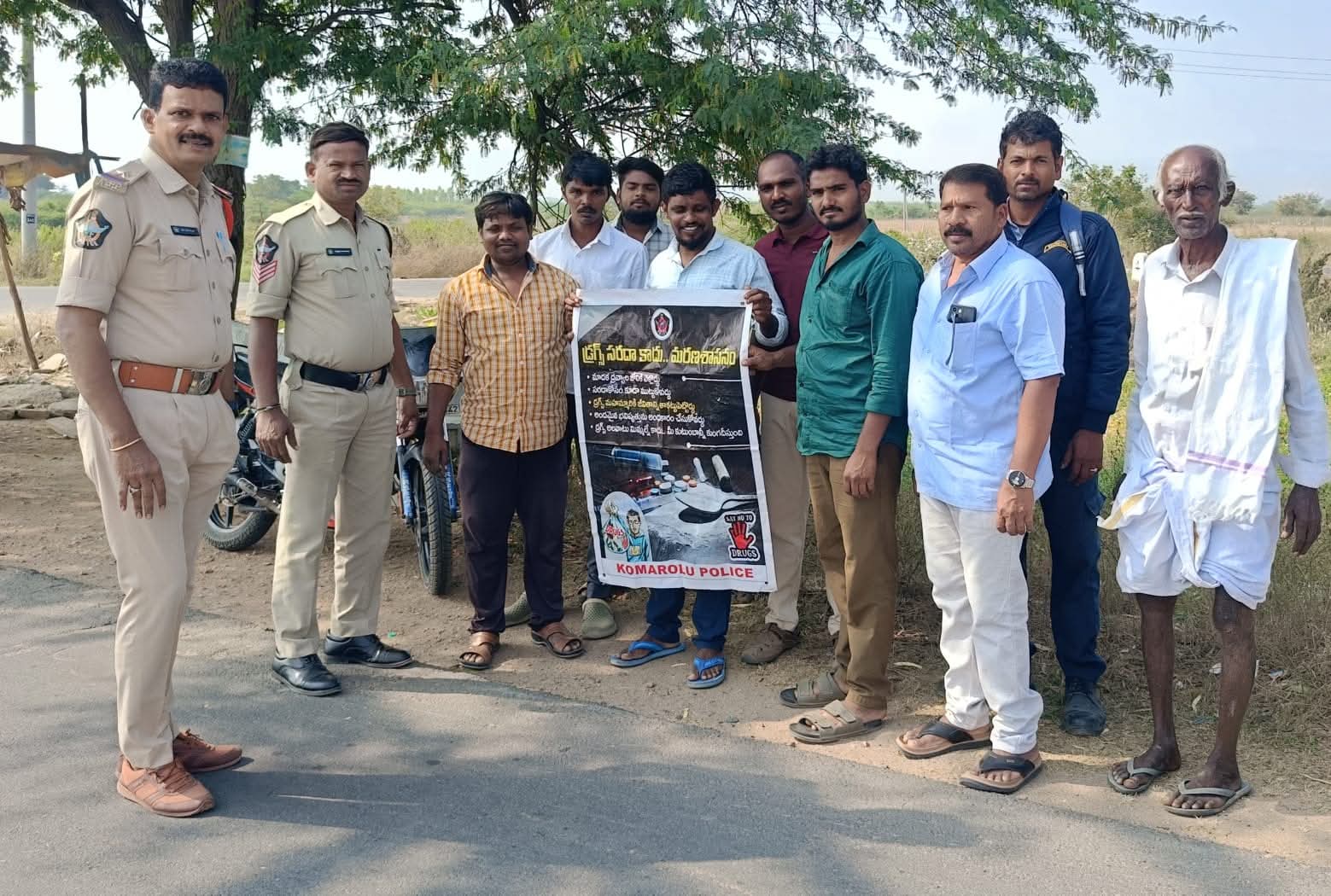 జిల్లా ఎస్పీ ఆదేశాల మేరకు, మార్కాపురం జిల్లా పోలీసులు, యువతను మాదకద్రవ్యాల బారిన పడకుండా కాపాడటం, గ్రామాలు–పట్టణాల్లో ఆరోగ్యకరమైన వాతావరణాన్ని నెలకొల్పడం లక్ష్యంగా మార్కాపురం జిల్లా వ్యాప్తంగా డ్రగ్స్ అవగాహన కార్యక్రమాలు నిర్వహించారు.ఈ కార్యక్రమంలో భాగంగా కొమరోలు పోలీస్ స్టేషన్ ఎస్ఐ ఆధ్వర్యంలో ఎడమకల్లు గ్రామంలో, గ్రామ పెద్దలు, స్థానిక ప్రజలతో కలిసి మాదకద్రవ్యాల (గంజాయి, డ్రగ్స్) దుష్ప్రభావాలపై ప్రత్యేక అవగాహన కార్యక్రమం నిర్వహించారు. డ్రగ్స్ వినియోగం వల్ల ఆరోగ్యానికి, కుటుంబానికి, సమాజానికి కలిగే తీవ్ర నష్టాలను వివరించి, యువత చెడు అలవాట్లకు దూరంగా ఉండాలని సూచించారు.అదేవిధంగా గిద్దలూరు పట్టణంలో కూడా డ్రగ్స్ అవగాహన కార్యక్రమం నిర్వహించి, ప్రజలకు గంజాయి సాగు, రవాణా, విక్రయం, వినియోగం అన్నీ చట్టరీత్యా నేరాలు అని, వాటికి కఠిన శిక్షలు ఉంటాయని పోలీసులు స్పష్టం చేశారు. మాదకద్రవ్యాల వ్యసనం నేరాలకు దారితీస్తుందని, యువత భవిష్యత్తును నాశనం చేస్తుందని హెచ్చరించారు.ఈ సందర్భంగా గ్రామ పెద్దలు, ప్రజలు తమ పరిసరాల్లో డ్రగ్స్ సంబంధిత కార్యకలాపాలు గమనిస్తే వెంటనే పోలీసులకు సమాచారం ఇవ్వాలని, పిల్లల ప్రవర్తనపై తల్లిదండ్రులు ప్రత్యేక దృష్టి సారించాలని సూచించారు. డ్రగ్స్ నిర్మూలనలో ప్రజలు–పోలీసుల సమన్వయం అత్యంత కీలకం అని పోలీసులు తెలిపారు.మాదకద్రవ్యాల నియంత్రణ, యువత భవిష్యత్తు పరిరక్షణ లక్ష్యంగా ఇలాంటి అవగాహన కార్యక్రమాలు భవిష్యత్తులో కూడా నిరంతరం కొనసాగుతాయని మార్కాపురం జిల్లా పోలీసులు స్పష్టం చేశారు.