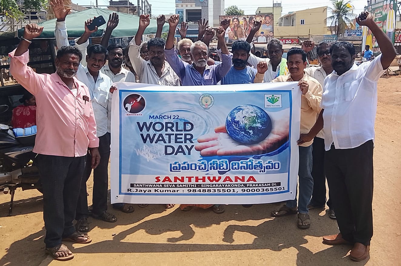 నేడు ప్రపంచ జల దినోత్సవం సందర్భంగా ఏర్పాటు చేసిన కార్యక్రమంలో సాంత్వనా సేవ సమితి డైరెక్టర్ రావినూతల జయ కుమార్ మాట్లాడుతూ… నీటి ప్రాముఖ్యత, సరఫరా, పరిరక్షణ, అవసరాన్ని గుర్తు చేసుకోవటం ఈ కార్యక్రమం యొక్క ముఖ్య ఉద్దేశం అన్నారు.భవిష్యత్తులో ఎదురయ్యే నీటి సంక్షోభాలను అధిగమించేందుకు ప్రజల్లో అవగాహన కల్పించడమే దీన్ని ముఖ్య లక్ష్యం అన్నారు నీటి సంరక్షణ మంచినీటి వనరులు రక్షణ వాతావరణ మార్పులు ప్రభావాన్ని అరికట్టే చర్యలపై అవగాహన కల్పించారు. ఈ సందర్భంగా కందుకూరు రోడ్డు నుండి పోలీస్ స్టేషన్ వరకు భారీ ర్యాలీ నిర్వహించారు.ఈ కార్యక్రమంలో రైతులు, గ్రామస్తులు, సాంత్వనా సిబ్బంది డొక్కా కిషోర్ బాబు, ఎం రాజారామ్ తదితరులు పాల్గొన్నారు.