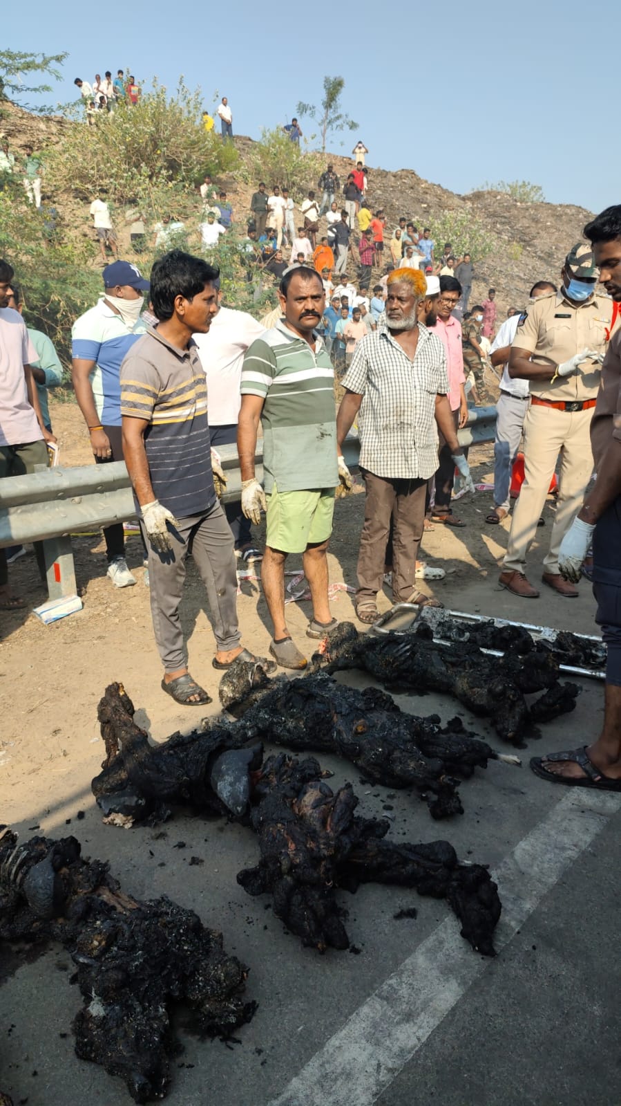 మార్కాపురం జిల్లా, రాయవరం సమీపంలో జరిగిన రోడ్డు ప్రమాదంపై ముఖ్యమంత్రి చంద్రబాబు నాయుడు దిగ్భ్రాంతి వ్యక్తం చేశారు. టిప్పర్-ప్రైవేట్ ట్రావెల్స్ బస్సు ఢీకొన్న ఘటనలో బస్సులోని పలువురు ప్రయాణికులు సజీవ దహనం కావడంపై తీవ్ర విచారం వ్యక్తం చేశారు. ప్రమాదంపై ముఖ్యమంత్రి అధికారులతో మాట్లాడారు. గాయపడిన వారికి అందుతున్న వైద్య సాయంపై ముఖ్యమంత్రి సమాచారం తెలుసుకున్నారు. తెలంగాణ రాష్ట్రంలోని నిర్మల్ నుంచి నెల్లూరుకు హరికృష్ణ ట్రావెల్స్ కు చెందిన ఈ బస్సు వెళుతున్నట్లు అధికారులు తెలిపారు. ప్రమాదంలో గాయపడిన మరో 20 మందిని తక్షణమే వివిధ ఆసుపత్రులకు తరలించి చికిత్స అందిస్తున్నామని జిల్లా పోలీసు అధికారులు ముఖ్యమంత్రికి వివరించారు. మృతుల సంఖ్యపెరిగే అవకాశం ఉందన్న సమాచారంపై ముఖ్యమంత్రి ఆందోళన వ్యక్తం చేశారు. ప్రమాదానికి గల కారణాలపై సమగ్ర విచారణ జరిపి నివేదిక సమర్పించాలని అధికారులను ఆదేశించారు….