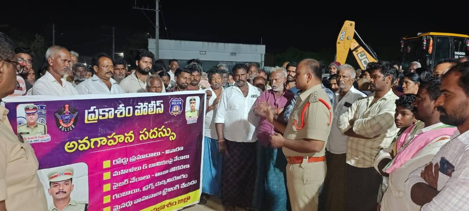 ప్రకాశం జిల్లా ఎస్పీ ఆదేశాల మేరకు ముండ్లమూరు మండలం కెల్లంపల్లి గ్రామంలో ట్రాఫిక్ నిబంధనలు, డ్రగ్స్ దుష్ప్రభావాలు, మహిళలపై నేరాల నిరోధం, అలాగే సైబర్ క్రైమ్ ముప్పులపై ప్రకాశం పోలీసులు అవగాహన కార్యక్రమం నిర్వహించారు.ఈ కార్యక్రమంలో గ్రామ ప్రజలకు ట్రాఫిక్ రూల్స్ పాటించడం ద్వారా ప్రమాదాలను ఎలా నివారించుకోవచ్చో వివరించడంతో పాటు డ్రగ్స్ వాడకంతో కలిగే శారీరక–మానసిక నష్టాలను వివరించారు. మహిళల భద్రత, డయల్ 100 మహిళ వంటి పోలీస్ సేవల గురించి సమాచారాన్ని అందించారు.ఇటీవల పెరిగిపోతున్న ఆన్‌లైన్ మోసాలు, ఫిషింగ్ కాల్స్, ఫేక్ లింకులు వంటి సైబర్ మోసాల నుంచి ఎలా జాగ్రత్తపడాలనే దానిపై ప్రజలకు సూచనలు చేశారు. అనుమానాస్పద విషయాలు గమనించిన వెంటనే పోలీసులకు సమాచారం ఇవ్వాలని అధికారులు పిలుపునిచ్చారు.ప్రజలు భద్రత కోసం పోలీసులు చేస్తున్న ప్రయత్నాలకు గ్రామస్తులు కృతజ్ఞతలు తెలిపారు.