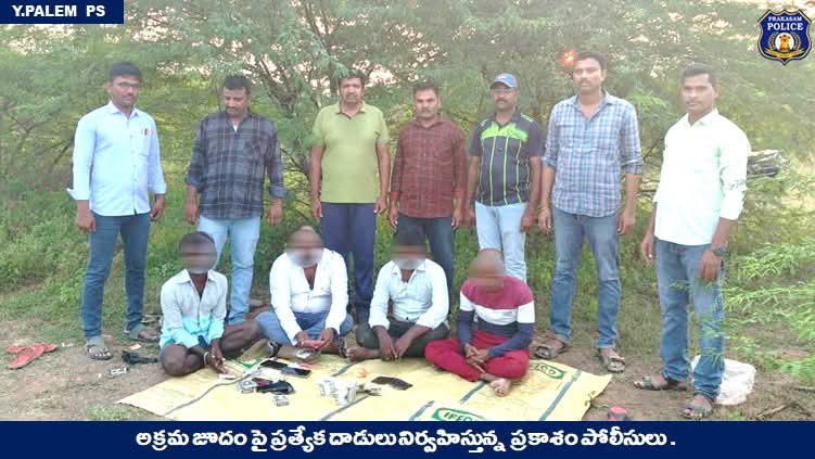 ప్రకాశం జిల్లా ఎస్పీ వి. హర్షవర్ధన్ రాజు, ఐపీఎస్. ఆదేశాల మేరకు, యర్రగొండపాలెం పోలీస్ స్టేషన్ పరిధిలో పోలీసులు జూదం ఆడుతున్న వారిపై దాడి నిర్వహించారు.ఈ దాడిలో, కొత్త గొల్లవిడిపి గ్రామం పొలాల్లో జూదం ఆడుతున్న నలుగురు వ్యక్తులను పట్టుకుని, వారి వద్ద నుండి ₹12,300 నగదును స్వాధీనం చేసుకున్నారు.జూదం వంటి అక్రమ కార్యకలాపాలు సామాజిక అశాంతికి దారి తీస్తాయని, ఇలాంటి చర్యలపై పోలీసులు నిరంతరం దాడులు కొనసాగిస్తారని తెలిపారు.ప్రజలు ఇలాంటి అక్రమ కార్యకలాపాలు గమనించిన వెంటనే పోలీసులకు సమాచారం ఇవ్వాలని, సహకరించాలని విజ్ఞప్తి చేశారు.