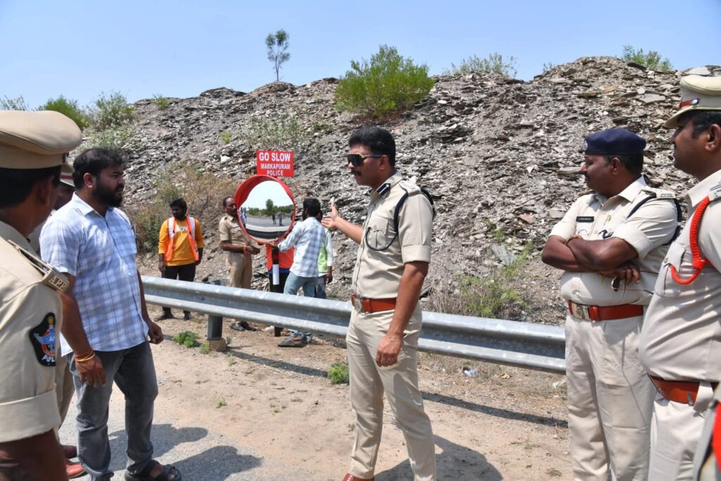 మార్కాపురం రూరల్ పోలీస్ స్టేషన్ పరిధిలోని రాయవరం వద్ద ఇటీవల జరిగిన రోడ్డు ప్రమాదం నేపథ్యంలో, రహదారి భద్రతను మెరుగుపరచే దిశగా కుంభాకార దర్పణాలను (Convex Mirrors) మార్కాపురం జిల్లా ఎస్పీ శ్రీ వి.హర్షవర్ధన్ రాజు.,ఐపీఎస్ గారు బుధవారం ఏర్పాటు చేసినారు.ప్రమాదాలకు కారణమయ్యే మలుపులు మరియు దృష్టి లోపం ఉన్న ప్రదేశాలలో డ్రైవర్లకు ముందస్తు హెచ్చరిక అందించేందుకు ఈ దర్పణాలు ఉపయోగపడతాయి. ఈ సందర్భంగా జిల్లా ఎస్పీ గారు దర్పణాల స్థితి, ఎత్తు, కోణం వంటి సాంకేతిక అంశాలను సమీక్షించి, అవసరమైన అన్ని ప్రదేశాల్లో వీటిని ఏర్పాటు చేయాలని సంబంధిత అధికారులకు ఆదేశించారు.అలాగే ప్రమాదాలు సంభవిస్తున్న మలుపులు, జంక్షన్లు, టి.జంక్షన్,వై జంక్షన్, యు టర్న్, విజిబిలిటీ తక్కువగా ఉన్న ప్రదేశాలను గుర్తించిన ప్రాంతాల్లో అదనంగా హెచ్చరిక బోర్డులు,కుంభాకార దర్పణాలు, ప్రతిబింబించే స్ట్రిప్స్ (Reflective Strips), వేగ పరిమితి సూచనలు ఏర్పాటు చేయాలని సూచించారు. ఇటివల కాలంలో రాయవరం శివారు ప్రాంతంలో బస్సు యాక్సిడెంట్ జరిగిన ప్రదేశాలో కుంభాకార దర్పణాలు అమర్చి ఎస్పీ పరిశీలించారు.ఈ సందర్భంగా ఎస్పీ మాట్లాడుతూ, రహదారి భద్రత ప్రతి పౌరుడి బాధ్యత అని, చిన్న నిర్లక్ష్యాలు పెద్ద ప్రమాదాలకు దారి తీస్తాయని, కుంభాకార దర్పణాల ఏర్పాటు వల్ల వాహనదారులు ఎదురుగా వచ్చే వాహనాలను ముందుగానే గమనించి వేగాన్ని నియంత్రించుకునే అవకాశం ఉంటుందని తెలిపారు. ముఖ్యంగా రాత్రి వేళల్లో మరియు వర్షాకాలంలో వీటి ఉపయోగం చాలా ముఖ్యమన్నారు. హెల్మెట్, సీట్ బెల్ట్ ధరించడం, మద్యం సేవించి వాహనం నడపకపోవడం, వేగ పరిమితులను పాటించడం వంటి నియమాలను తప్పనిసరిగా పాటించాలని విజ్ఞప్తి చేశారు.ప్రమాదాలను పూర్తిగా నివారించడం ప్రతి ఒక్కరి బాధ్యత అని, జిల్లా పోలీస్ శాఖ తీసుకుంటున్న ఈ చర్యలకు ప్రజల సహకారం కూడా అవసరమని తెలిపారు. వాహనదారులు ట్రాఫిక్ నిబంధనలు కచ్చితంగా పాటిస్తూ, వేగ నియంత్రణ పాటించడం, మలుపులు వద్ద జాగ్రత్తగా వాహనాలు నడపడం, రోడ్డు పరిస్థితులను గమనించడం వంటి అంశాలను కచ్చితంగా అనుసరించాలని సూచించారు.ఈ కార్యక్రమంలో మార్కాపురం డిఎస్పీ యు.నాగరాజు, వై.పాలెం సీఐ కె.అజయ్ కుమార్, కంభం సీఐ మల్లికార్జున రావు,గిద్దలూరు రూరల్ సీఐ రామకోటయ్య, గిద్దలూరు అర్బన్ సురేష్, త్రిపురాంతకం సీఐ అస్సన్, ఎస్సైలు, నేషనల్ హై వే అదికారులు మరియు తదితరులు పాల్గొన్నారు.