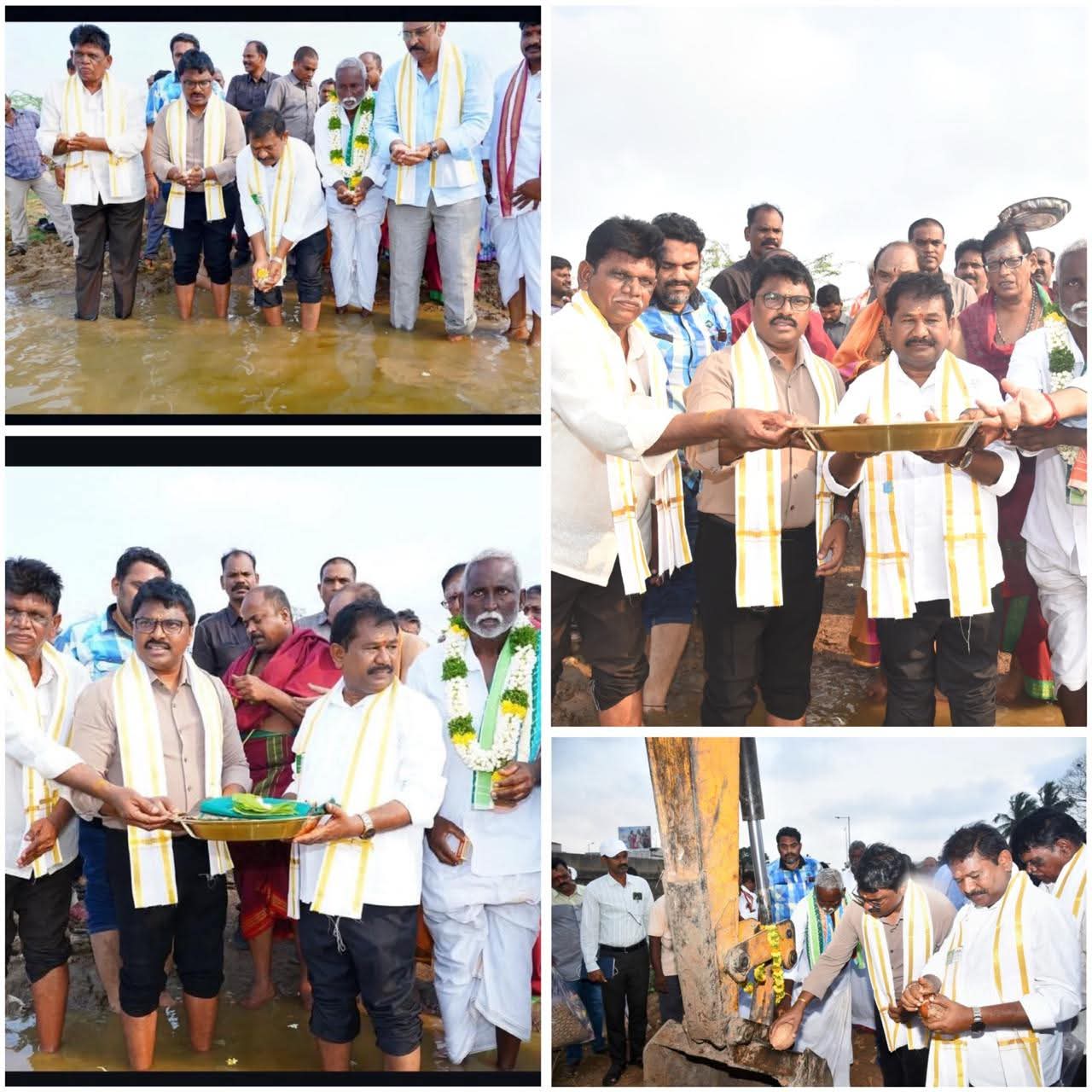 వల్లూరులో నిర్వహించిన ‘జల ధార – జల హారతి’ కార్యక్రమంలో సాంఘిక సంక్షేమశాఖ మంత్రి డా. డోలా శ్రీబాలవీరాంజనేయ స్వామి గారితో జిల్లా కలెక్టర్ శ్రీ పి. రాజాబాబు గారు కలిసి పాల్గొనడం జరిగింది.కలెక్టర్ గారు “జలమే జీవనాధారమని, నీటి వనరుల సంరక్షణకు రాష్ట్ర ప్రభుత్వం అత్యంత ప్రాధాన్యం ఇస్తోందని తెలిపారు. ఈ క్రమంలో చెరువుల పూడికతీత, మరమ్మతులు, మొక్కల నాటకం వంటి పనులను 100 రోజుల ప్రత్యేక ప్రణాళికలో భాగంగా వేగవంతంగా చేపడుతున్నామని, ఈ చర్యల ద్వారా భూగర్భ జల మట్టం పెంపు, సాగునీటి సౌకర్యాల విస్తరణ, రైతులపై ఆర్థిక భారం తగ్గించడం లక్ష్యంగా పనిచేస్తున్నామని సూచించారు.అన్ని శాఖల అధికారులు సమన్వయంతో పనిచేసి, నీటి వనరుల అభివృద్ధి పనులను సమయానికి పూర్తి చేయాలని అధికారులకు దిశానిర్దేశం చేశారు. జల సంరక్షణలో ప్రజల భాగస్వామ్యం అత్యంత కీలకం. ప్రతి ఒక్కరూ నీటిని ఆదా చేసి భవిష్యత్ తరాలకు భద్రపరచాలి.
