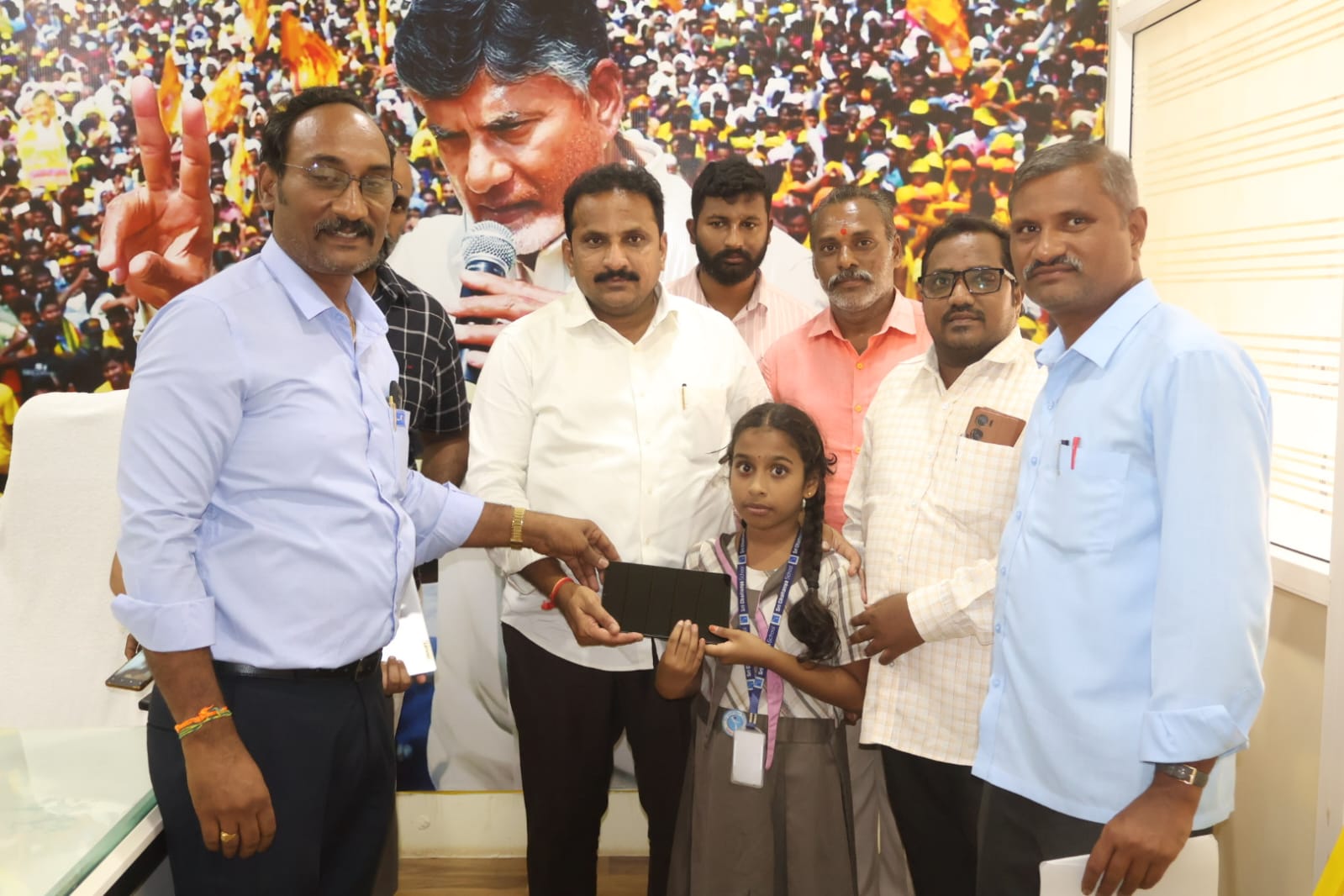 ఇండియన్ నేషనల్ టాలెంట్ సెర్చ్ ఒలంపియాడ్ పరీక్షలలో…. కందుకూరు పట్టణంలోని శ్రీ చైతన్య టెక్నో స్కూల్ విద్యార్థులు ప్రతిభ కనబరిచారు. 6వ తరగతి విద్యార్థిని సోమవరపు శ్రీ జోషిత గ్రాండ్ ప్రైజ్ కింద ల్యాప్ టాప్, 3వ తరగతి విద్యార్థిని గ్రీష్మ… ట్యాబు బహుమతులుగా అందుకున్నారు. స్థానిక టిడిపి కార్యాలయంలో స్కూల్ నిర్వాహకులు ఎమ్మెల్యే ఇంటూరి నాగేశ్వరరావు ని సోమవారం మర్యాదపూర్వకంగా కలిశారు. ఈ సందర్భంగా ఎమ్మెల్యే చిన్నారులను అభినందించారు. ప్రధానోపాధ్యాయులు బి సురేష్, ఏజీఎం అంజయ్య, ఆర్ ఐ అనిల్ కుమార్, కోఆర్డినేటర్ శ్రీనివాసరావు, డీన్ బ్రహ్మయ్య, సి బ్యాచ్ ఇంచార్జ్ శివయ్య, ఉపాధ్యాయులు, విజేతల తల్లిదండ్రులు కార్యక్రమంలో పాల్గొన్నారు.