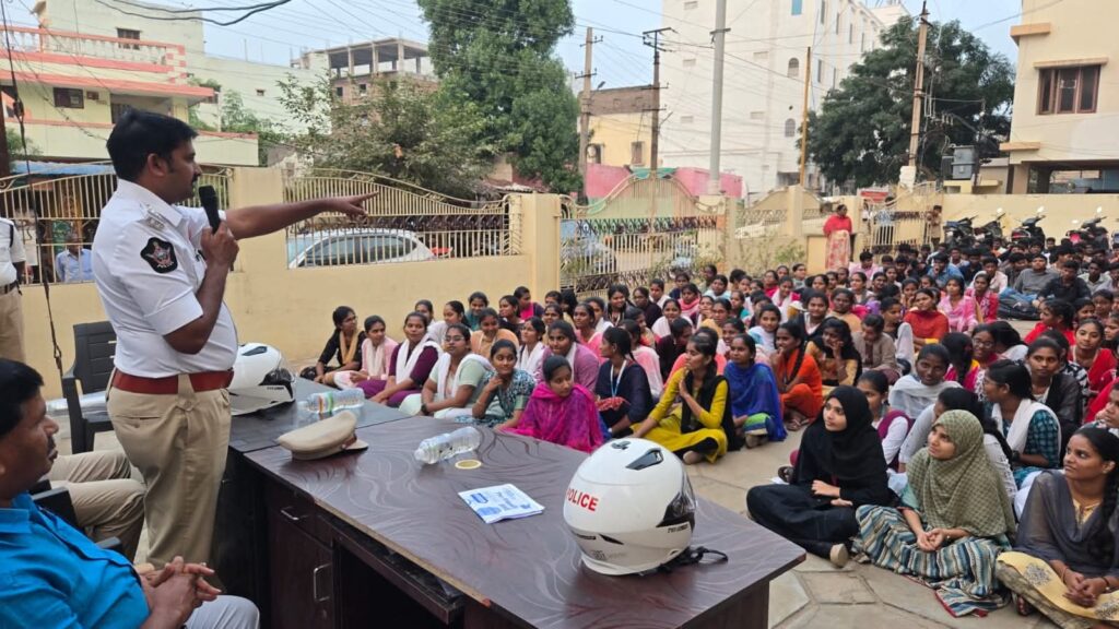 ప్రకాశం జిల్లా ఎస్పీ ఆదేశాల మేరకు, ఒంగోలు ట్రాఫిక్ పోలీస్ స్టేషన్ పరిధిలోని సరస్వతి జూనియర్ కాలేజీ, భాగ్యనగర్లో ట్రాఫిక్ అవగాహన కార్యక్రమం నిర్వహించారు. ఈ కార్యక్రమంలో ఒంగోలు ట్రాఫిక్ సీఐ గారు పాల్గొని విద్యార్థులకు రోడ్డు భద్రతకు సంబంధించిన కీలక అంశాలపై అవగాహన కల్పించారు.ఈ సందర్భంగా విద్యార్థులకు ట్రాఫిక్ నిబంధనల ప్రాముఖ్యత, హెల్మెట్ తప్పనిసరి వినియోగం, ద్విచక్ర వాహనాలపై అనధికారికంగా సైలెన్సర్ మార్పులు చేయకూడదనే అంశాలు, వేగ నియంత్రణ, లైసెన్స్ లేకుండా వాహనాలు నడపకూడదని స్పష్టంగా వివరించారు. చిన్న నిర్లక్ష్యం కూడా ప్రాణాపాయానికి దారితీయవచ్చని, ట్రాఫిక్ నియమాలను కచ్చితంగా పాటిస్తే ప్రమాదాలను గణనీయంగా తగ్గించవచ్చని తెలిపారు.రోడ్డు భద్రత అనేది పోలీసుల బాధ్యత మాత్రమే కాకుండా ప్రతి పౌరుడి బాధ్యత అని, ముఖ్యంగా యువత నుంచే ట్రాఫిక్ నియమాలపై అవగాహన పెరిగితే భవిష్యత్తులో ప్రమాదాలు తగ్గుతాయని అన్నారు. విద్యార్థులు బాధ్యతాయుత పౌరులుగా మారి, ట్రాఫిక్ నియమాలను స్వయంగా పాటించడంతో పాటు ఇతరులకు కూడా అవగాహన కల్పించాలని కోరారు.ప్రజల ప్రాణ భద్రతే ప్రకాశం జిల్లా పోలీస్ ప్రధాన లక్ష్యమని, జిల్లావ్యాప్తంగా విద్యా సంస్థల్లో ఇలాంటి ట్రాఫిక్ అవగాహన కార్యక్రమాలు నిరంతరం కొనసాగుతాయని పోలీసులు తెలిపారు.