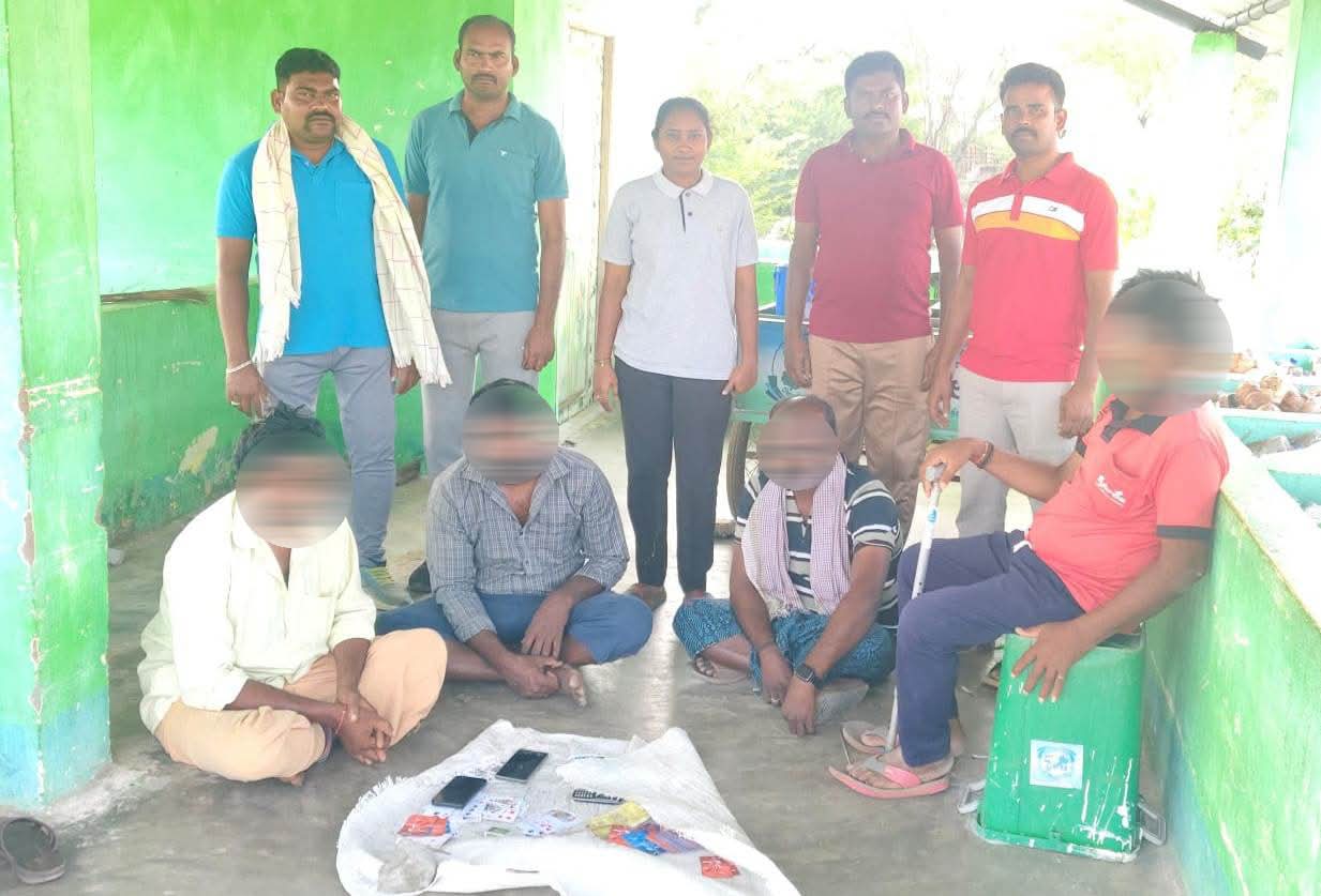వెలిగండ్ల మండలం చోడవరం గ్రామ పరిధిలోని పొలాల్లో అక్రమంగా జూదం ఆడుతున్న నలుగురు వ్యక్తులను పోలీసులు పట్టుకుని, వారి వద్ద నుంచి నగదును స్వాధీనపరచుకున్నారు.ప్రకాశం జిల్లా ఎస్పీ సూచనల మేరకు, జిల్లా వ్యాప్తంగా పేకాట శిబిరాలు మరియు ఇతర చట్టవిరుద్ధ కార్యకలాపాలపై ప్రకాశం జిల్లా పోలీస్ అధికారులు నిరంతరం అప్రమత్తంగా ఉంటూ ఆకస్మిక తనిఖీలు, దాడులు నిర్వహిస్తున్నారు. ఈ క్రమంలో వెలిగండ్ల పోలీస్ స్టేషన్ పరిధిలో అక్రమంగా జూదం నిర్వహిస్తున్న వారిని గుర్తించి చట్టప్రకారం చర్యలు చేపట్టారు.సామాజిక శాంతి భద్రతలకు భంగం కలిగించే జూదం వంటి అక్రమ కార్యకలాపాలపై కఠిన చర్యలు తప్పవని పోలీసులు స్పష్టం చేశారు. ఇలాంటి చట్టవిరుద్ధ కార్యకలాపాలకు సంబంధించి ప్రజలకు ఏవైనా సమాచారం ఉన్నట్లయితే వెంటనే డయల్ 100 ద్వారా పోలీసులకు తెలియజేయాలని సూచించారు.