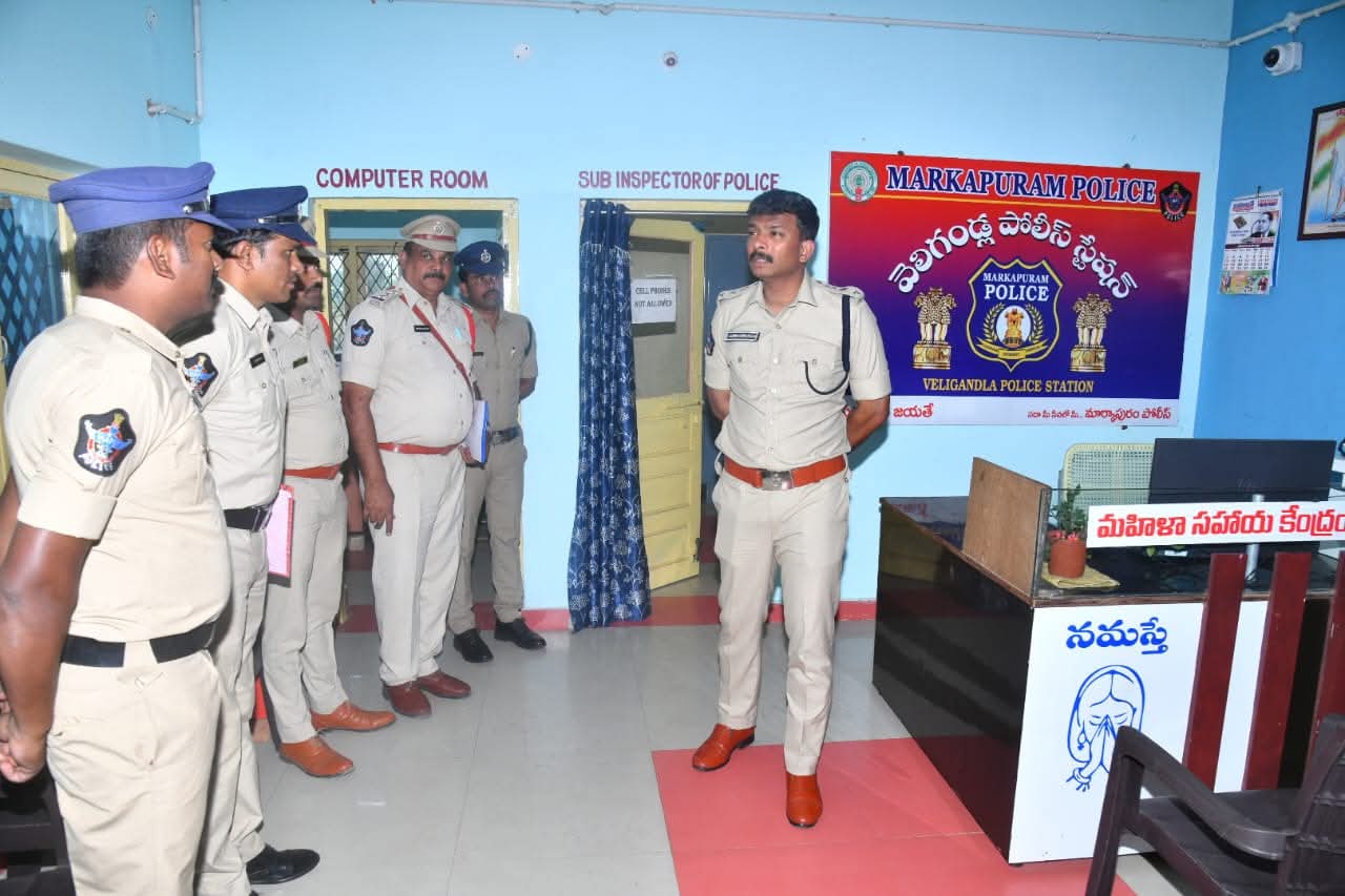 వెలిగండ్ల మరియు చంద్రశేఖరపురం పోలీస్ స్టేషన్లను బుధవారం తనిఖీ చేసి, స్టేషన్ పరిసరాలను పరిశీలించారు. స్టేషన్లోని పలు రికార్డులను తనీఖీ చేయడంతో పాటు, స్టేషన్ పనీతీరుతో పాటు, స్టేషన్ పరిధిలో ఏలాంటి నేరాలు జరుగుతాయి, ఎంత మంది చెడు నడతగలిగిన వారు వున్నారు, స్టేషన్ సిబ్బంది మొదలైన వివరాలను అధికారులను అడిగి తెలుసుకున్నారు.రికార్డుల నిర్వహణలో ఎప్పటికప్పుడు అప్డేట్ గా ఉంచాలని, సమగ్రత పాటించాలని, కేసులు త్వరితగతిన పరిష్కరించడంతో బాధితులకు సత్వర న్యాయం అందించగలమని తెలిపారు. ప్రతి కేసు సమయంలో జాప్యం లేకుండా బాధితులకు సత్వర సహాయం అందించాలన్నారు. సమస్యతో పోలీస్ స్టేషన్కు వచ్చే ప్రజలతో మర్యాదపూర్వకంగా మెలగాలన్నారు.మహిళల భద్రతకు అధిక ప్రాధాన్యత ఇవ్వాలని, వారికి రక్షణ కల్పించేందుకు ముమ్మరంగా చర్యలు తీసుకోవాలని తెలిపారు. మహిళా చట్టాలపై అవగాహన కార్యక్రమాలు నిర్వహించడం ద్వారా మహిళలకు భద్రత పెంపొందించాలన్నారు.విద్యాసంస్థలలో శక్తి టీమ్స్ ద్వారా అవగాహన కార్యక్రమాలు ఏర్పాటు చేయాలని, ప్రధాన సెంటర్లలో, జన సమూహాల అధికంగా ఉండే ప్రాంతాలలో, వ్యాపార సముదాయాల వద్ద మరియు నిర్మానుష్య ప్రదేశాలలో సీసీ కెమెరాలు ఏర్పాటు చేయించేలా ప్రజలకు అవగాహన కల్పించాలన్నారు.పోలీసు స్టేషన్ పరిధిలోని చెడు నడతగలవ్యక్తుల వేలిముద్రలను అప్ డేట్ చేస్తూ, వారి కదలికలపై ప్రత్యేక నిఘా ఏర్పాటు చేయాలన్నారు. పాత నేరస్థులపై నిఘా ఉంచాలన్నారు. సైబర్ నేరాల పట్ల ప్రజలను అప్రమత్తం చేయాలని, సైబర్ నేరాలను నియంత్రించుటకు అవగాహన సదస్సులు నిర్వహించాలన్నారు.బహిరంగ మద్యపానం జరుగుతున్న ప్రదేశాలను గుర్తించి, అక్కడ క్రమం తప్పకుండా తనిఖీలు నిర్వహించి చర్యలు తీసుకోవాలని ఆదేశించారు. అలాగే ఆ ప్రాంతాలు పరిశుభ్రంగా ఉండేలా గ్రామ పంచాయతీ మరియు మున్సిపల్ సిబ్బంది సహకారంతో శుభ్రత కార్యక్రమాలు చేపట్టాలని సూచించారు.రహదారి ప్రమాదాల నివారణకు విశిష్ట కృషి చేస్తూ, బ్లాక్ స్పాట్స్ వద్ద హెచ్చరిక బోర్డులు ఏర్పాటు చేసి, రహదారి భద్రతా ప్రమాణాలు ప్రతి ఒక్కరు పాటించేలా అవగాహన కార్యక్రమాలు నిర్వహించాలి. పోలీస్ స్టేషన్ పరిధిలోని గ్రామాల్లో రాత్రిపూట గస్తీని ముమ్మరం చేయాలని, గ్రామస్తులతో మమేకమవుతు సమాచార వ్యవస్థను బలోపేతం చేసుకోవాలని సూచించారు.స్టేషన్ ఆవరణలో మొక్కల నాటి స్టేషన్ ఆవరణములను పరిశుభ్రం ఉంచుకోవాలని సూచించారు