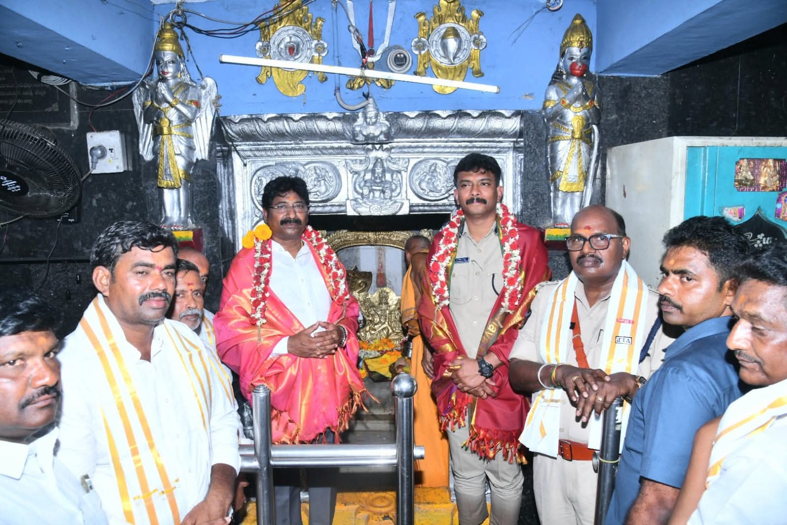 మార్కాపురం జిల్లా రాచర్ల పోలీస్ స్టేషన్ పరిధిలో శ్రీ నెమలిగుండ్ల రంగనాయక స్వామి వారి దేవాలయాన్ని మంగళవారం జిల్లా ఎస్పీ గారితో పాటు గిద్దలూరు ఎమ్మెల్యే శ్రీ ముత్తుముల అశోక్ రెడ్డిగారు సందర్శించారు. ఏప్రిల్ 2 నుండి 5 వరకు ఈ బ్రహ్మోత్సవాలు పూజా కార్యక్రమాలు, కళ్యాణం, తెప్పోత్సవం, రథోత్సవం, సందర్భంగా చేపట్టిన భద్రతా ఏర్పాట్లను జిల్లా ఎస్పీ పరిశీలించారు. ఈ సందర్భంగా దేవాలయ పరిసరాలు, ప్రవేశ మార్గాలు, రథం వద్ద ఏర్పాటు చేసిన భద్రతా చర్యలు, బందోబస్తు మరియు ట్రాఫిక్ నియంత్రణ ఏర్పాట్లను సమీక్షించారు. పోలీస్ అధికారులతో పాటు ఆలయ కమిటీ సభ్యులకు పలు సూచనలు చేశారు. దర్శనానికి వచ్చే భక్తులకు ఎలాంటి అసౌకర్యం కలగకుండా బందోబస్తు ఏర్పాట్లు చేయాలని, వాహనాల రాకపోకలకు అంతరాయం లేకుండా ప్రణాళికాబద్ధంగా ట్రాఫిక్ నియంత్రణ చర్యలు చేపట్టాలని, ఎలాంటి అవాంఛనీయ సంఘటనలు చోటుచేసుకోకుండా అప్రమత్తంగా వ్యవహరించాలని అధికారులను ఆదేశించారు.ఈ సందర్భంగా జిల్లా ఎస్పీ మాట్లాడుతూ, శ్రీ నెమలి గుండ్ల రంగనాయక స్వామి వారి బ్రహ్మోత్సవాలు సందర్భంగా పెద్ద సంఖ్యలో భక్తులు రానున్న నేపథ్యంలో పోలీస్ సిబ్బందితో ప్రత్యేక బందోబస్తు ఏర్పాటు చేయడం జరిగిందని తెలిపారు. అదనంగా ప్రత్యేక రెస్పాన్స్ టీమ్స్ ఏర్పాటు చేయడం జరిగింది. ట్రాఫిక్కు ఎలాంటి ఆటంకాలు కలగకుండా ప్రత్యేక చర్యలు చేపట్టామని, బయటి ప్రాంతాల నుంచి వచ్చే వాహనాలకు ప్రత్యేక పార్కింగ్ సౌకర్యాలు కల్పించామని చెప్పారు. భక్తులు పోలీస్ వారికి సహకరించి, వారి సూచనలను పాటించాలని జిల్లా ఎస్పీ విజ్ఞప్తి చేశారు. రథోత్సవం సమయంలో తీసుకోవాల్సిన భద్రతా చర్యలపై పలు సూచనలు చేశారు. ఎలాంటి అవాంఛనీయ సంఘటనలు చోటుచేసుకోకుండా అప్రమత్తంగా వ్యవహరించాలని, అనుమానాస్పద వ్యక్తులు లేదా వస్తువులపై ప్రత్యేక నిఘా ఉంచాలని సూచించారు. అదనంగా ప్రత్యేక రెస్పాన్స్ టీమ్స్ను సిద్ధంగా ఉంచి, అత్యవసర పరిస్థితుల్లో వెంటనే స్పందించేలా చర్యలు తీసుకోవాలన్నారు. సిబ్బంది విధుల్లో అప్రమత్తతతో, బాధ్యతాయుతంగా వ్యవహరించాలని జిల్లా ఎస్పీ సూచించారు.