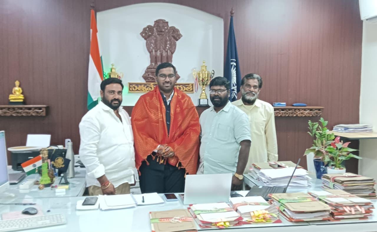 ప్రకాశం జిల్లా , కందుకూరు రెవెన్యూ డివిజన్ సబ్ కలెక్టర్ దామోదర్ హిమవంశీ ఐఏఎస్ ను భారతీయ జనతా పార్టీ ప్రకాశం జిల్లా ఎస్సీ మోర్చా అధ్యక్షులు పెరికే లక్ష్మణ్ సోమవారం సబ్ కలెక్టర్ కార్యాలయం నందు మర్యాదపూర్వకంగా కలిసి శాలువాతో సత్కరించి శుభాకాంక్షలు తెలిపారు. ఈ సందర్భంగా సబ్ కలెక్టర్ దామోదర్ హిమవంశీతో లక్ష్మణ్ మాట్లాడుతూ పొన్నలూరు మండలం గతంలో కనిగిరి రెవిన్యూ డివిజన్ లో ఉండటం వలన సామాన్య ప్రజలు సమస్యలను తెలియజేయుటకు ఆర్ డి ఓ ను కలవడానికి కనిగిరి పోలేక సమస్యలు పరిష్కారం కాక ప్రజలు ఇబ్బందులు ఎదుర్కొనే వాళ్ళని , ఎన్డీఏ కూటమి ప్రభుత్వం అధికారంలోకి వచ్చిన తర్వాత పొన్నలూరు మండలాన్ని తిరిగి కందుకూరు రెవిన్యూ డివిజన్ లో కలపడంతో సామాన్య ప్రజలు సమస్యలు పరిష్కారం అవుతాయని చర్చించుకుంటూ ఉండటాన్ని గమనించిన తరువాత చాలా సంతోషంగా ఉందన్నారు. ఏ సమస్యలు ఉన్న నేరుగా నన్ను కలవవచ్చునని సాధ్యమైనంత వరకు పరిష్కారం చూపుతానని సబ్ కలెక్టర్ దామోదర్ హిమవంశీ చెప్పారని లక్ష్మణ్ మీడియాకు తెలియజేశారు. సబ్ కలెక్టర్ దామోదర్ హిమవంశీ ఐఏఎస్ ను కలిసిన వారిలో నెల్లూరు పార్లమెంటు తెలుగుదేశం పార్టీ మాజీ అధికార ప్రతినిధి గోచిపాతల మోషే , భారతీయ జనతా పార్టీ ప్రకాశం జిల్లా ఎస్సీ మోర్చా ప్రధాన కార్యదర్శి ఎర్రగుంట్ల శిరీష్ తదితరులు ఉన్నారు……
