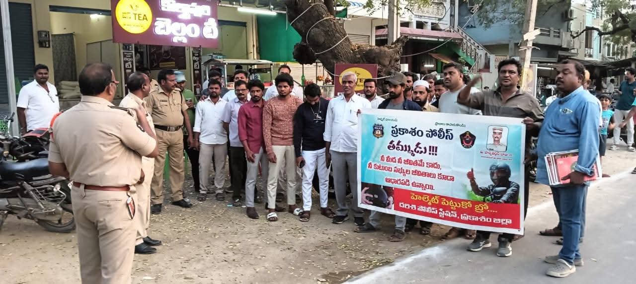 ప్రకాశం జిల్లా ఎస్పీ ఆదేశాల మేరకు,రోడ్డు ప్రమాదాల నివారణ దృష్ట్యా, ప్రకాశం జిల్లా పోలీసులు దర్శి పట్టణ పరిసర ప్రాంతాల్లో ప్రత్యేక అవగాహన కార్యక్రమం నిర్వహించారు. దర్శి–పొదిలి రోడ్డులో హెల్మెట్ లేకుండా బాణంలా దూసుకుపోతూ మోటార్ సైకిళ్లు నడుపుతున్న వాహనదారుల కారణంగా ప్రమాదాలు పెరుగుతున్న నేపథ్యంలో, ప్రజలకు రోడ్డు భద్రతపై అవగాహన కల్పించారు.ఈ సందర్భంగా పోలీస్ అధికారులు వాహనదారులకు హెల్మెట్ తప్పనిసరిగా ధరించాల్సిన అవసరం, అధిక వేగం వల్ల కలిగే ప్రమాదాలు, ట్రాఫిక్ నిబంధనలు పాటించాల్సిన ప్రాధాన్యతను వివరించారు. హెల్మెట్ వాడకంతో ప్రాణాలను కాపాడుకోవచ్చని, చిన్న నిర్లక్ష్యం కూడా పెద్ద ప్రమాదాలకు దారితీస్తుందని తెలియజేశారు.