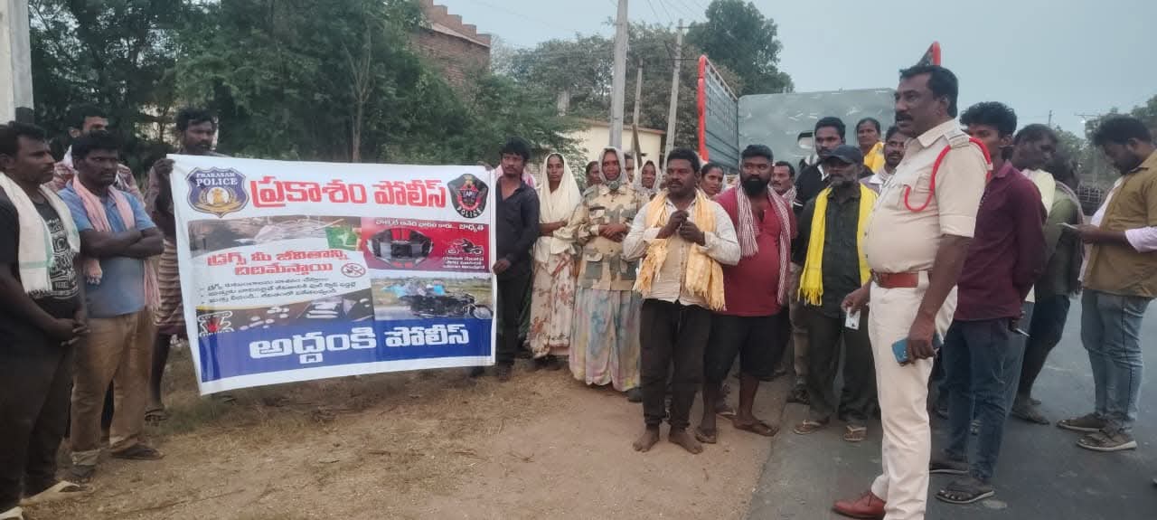 రోడ్డు ప్రమాదాల నివారణ, యువతను మత్తు పదార్థాల బారిన పడకుండా కాపాడడం, ప్రజల ప్రాణ భద్రతను మరింత బలోపేతం చేయాలనే లక్ష్యంతో ప్రకాశం జిల్లా ఎస్పీ ఆదేశాల మేరకు, ప్రకాశం జిల్లా పోలీసులు అద్దంకి పట్టణంలో హెల్మెట్ వినియోగం మరియు మత్తు పదార్థాల (డ్రగ్స్) నివారణపై ప్రత్యేక అవగాహన కార్యక్రమాన్ని నిర్వహించారు.ఈ కార్యక్రమంలో భాగంగా, ద్విచక్ర వాహనదారులు తప్పనిసరిగా హెల్మెట్ ధరించాల్సిన అవసరం, హెల్మెట్ ధరించకపోవడం వల్ల జరిగే ప్రమాదాలు, ప్రాణ నష్టాలపై ప్రజలకు స్పష్టంగా వివరించారు. చిన్న నిర్లక్ష్యం కూడా పెద్ద ప్రమాదాలకు దారి తీస్తుందని, హెల్మెట్ వాడకం ప్రాణాలను కాపాడే కీలక సాధనమని పోలీసులు తెలిపారు.అదేవిధంగా, మత్తు పదార్థాల వినియోగం వల్ల కలిగే శారీరక, మానసిక, సామాజిక దుష్పరిణామాలు, అలాగే డ్రగ్స్‌కు సంబంధించిన చట్టపరమైన శిక్షలపై ప్రజలకు అవగాహన కల్పించారు. ముఖ్యంగా యువత డ్రగ్స్‌కు దూరంగా ఉండాలని, ఆరోగ్యకరమైన జీవనశైలిని అలవర్చుకోవాలని సూచించారు.ఈ అవగాహన కార్యక్రమాన్ని అద్దంకి సీఐ ఆధ్వర్యంలో నిర్వహించగా, ప్రజలు చురుకుగా పాల్గొని పోలీసులకు తమ సహకారం అందించారు. రోడ్డు భద్రత, మత్తు పదార్థాల నివారణలో ప్రజల భాగస్వామ్యమే ముఖ్యమని పోలీసు అధికారులు స్పష్టం చేశారు.ప్రజల భద్రతే లక్ష్యంగా ఇలాంటి అవగాహన కార్యక్రమాలు జిల్లావ్యాప్తంగా నిరంతరం కొనసాగుతాయని ప్రకాశం జిల్లా పోలీసు శాఖ తెలియజేసింది.