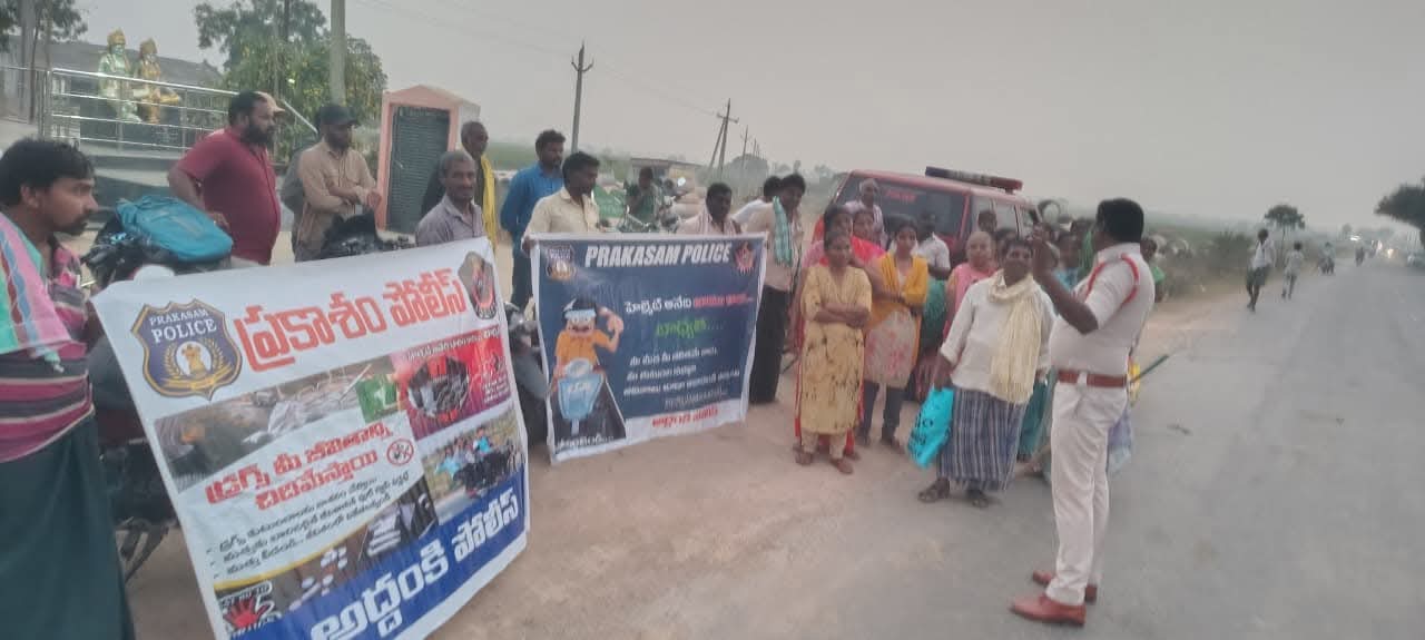రోడ్డు ప్రమాదాలను తగ్గించడం, యువతను మాదకద్రవ్యాల ముప్పు నుంచి కాపాడటం లక్ష్యంగా ప్రకాశం జిల్లా ఎస్పీ ఆదేశాల మేరకు, ప్రకాశం పోలీసులు జిల్లా వ్యాప్తంగా హెల్మెట్ వినియోగం మరియు మాదకద్రవ్యాల (డ్రగ్స్) నియంత్రణపై అవగాహన కార్యక్రమం నిర్వహించారు.ఈ కార్యక్రమంలో పోలీస్ అధికారులు రెండు చక్రాల వాహనదారులు తప్పనిసరిగా హెల్మెట్ ధరించాల్సిన అవసరాన్ని వివరించారు. హెల్మెట్ ధరించడం ద్వారా తల గాయాల ప్రమాదం గణనీయంగా తగ్గుతుందని, చిన్న నిర్లక్ష్యం కూడా ప్రాణాంతకంగా మారవచ్చని తెలిపారు. ట్రాఫిక్ నిబంధనలు పాటించడం, అతివేగం నివారించడం, మద్యం లేదా మాదకద్రవ్యాలు సేవించి వాహనాలు నడపకూడదని స్పష్టంగా సూచించారు.అలాగే మాదకద్రవ్యాల దుష్ప్రభావాలపై ప్రజలకు అవగాహన కల్పించారు. డ్రగ్స్ వినియోగం వ్యక్తి ఆరోగ్యాన్ని, కుటుంబాన్ని మరియు సమాజాన్ని తీవ్రంగా ప్రభావితం చేస్తుందని, యువత భవిష్యత్తును నాశనం చేస్తుందని అధికారులు హెచ్చరించారు. మాదకద్రవ్యాల అక్రమ రవాణా, విక్రయం, వినియోగానికి పాల్పడిన వారిపై చట్టప్రకారం కఠిన చర్యలు తప్పవని తెలిపారు.తల్లిదండ్రులు, ఉపాధ్యాయులు మరియు ప్రజలు అప్రమత్తంగా ఉండి, డ్రగ్స్‌కు సంబంధించిన అనుమానాస్పద కార్యకలాపాలు కనిపించిన వెంటనే పోలీసులకు సమాచారం అందించాలని కోరారు. సమాజం–పోలీసుల సమన్వయంతోనే మాదకద్రవ్యాల నిర్మూలన సాధ్యమని పేర్కొన్నారు.ప్రజల ప్రాణ రక్షణే పోలీస్ శాఖ ప్రధాన లక్ష్యమని, రోడ్డు భద్రత, డ్రగ్స్ నిర్మూలన దిశగా ఇలాంటి అవగాహన కార్యక్రమాలను నిరంతరం కొనసాగిస్తామని ప్రకాశం జిల్లా పోలీసులు తెలిపారు.